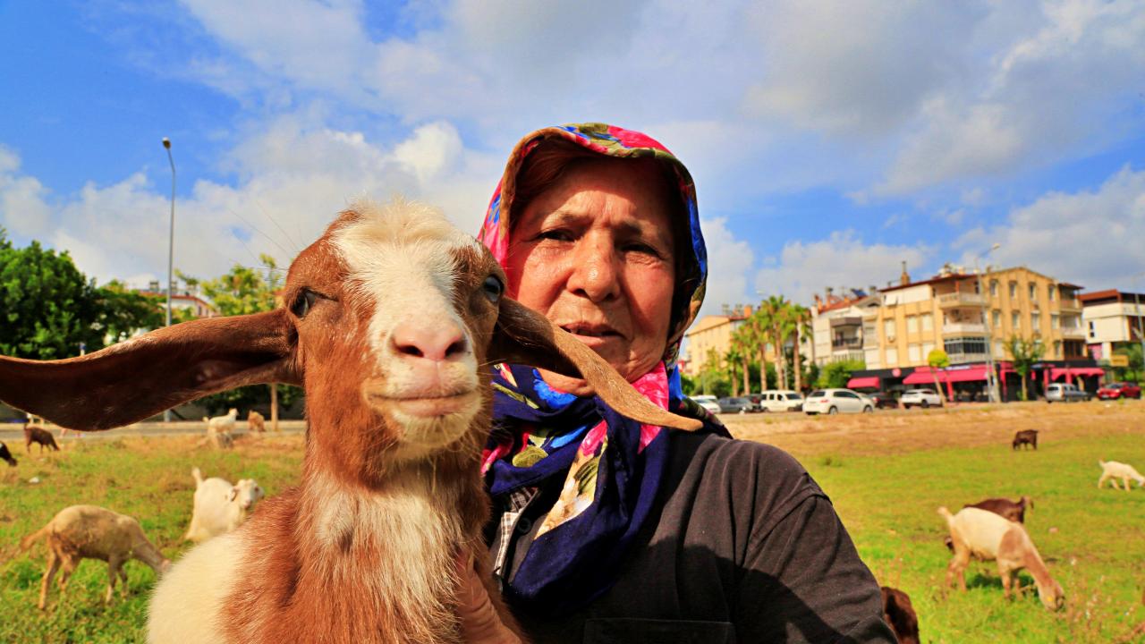 Konyaaltı Yarbaşçandır köyünde doğduğunu ve çocukluğundan buyana hayvancılık ile uğraştığını, vazgeçemediğini belirten Menşure Albayram, “Öncesinde annem-babam vardı, evlendikten sonra eşimle birlikte devam ediyoruz. Beni anneleri gibi görüyorlar. İsimleri bile var, Hazal, Alev, Cesur Yaman Ali, Damla, Güneş hepsinin bir ismi var. Cesur`un annesinin sütü olmadı. Başka annelerden sağarak biberonla besledim. Yem ve yeşillik yemeye başlayana kadar. Versem yine koşa koşa gelir çocuk gibi biberonu alır. Çok sevimliler. Evin arka tarafında bir boşluk var ormanlık alan yerden çıkan bir pınarda var oraya götürüyorum her gün otlatmaya, birde bu taraflara getiriyoruz. Binaların arasından ara yollardan, karşıya geçecek olursak eşimle birlikte trafiğin azalmasını bekleyip, hep beraber geçiriyoruz” dedi.