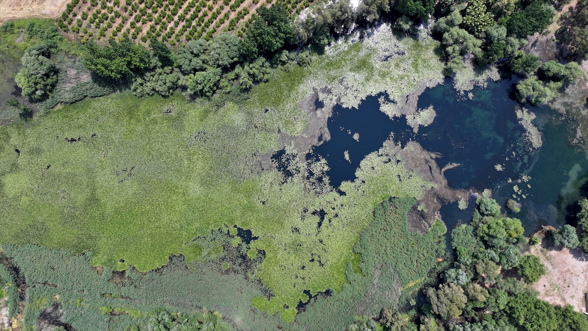 Kent merkezine yaklaşık 30 kilometre uzaklıktaki Döşemealtı ilçesinde bulunan Kırkgöz`ün yüzeyi, yazın gelmesiyle su bitkisi nilüferlerle kaplanıyor.