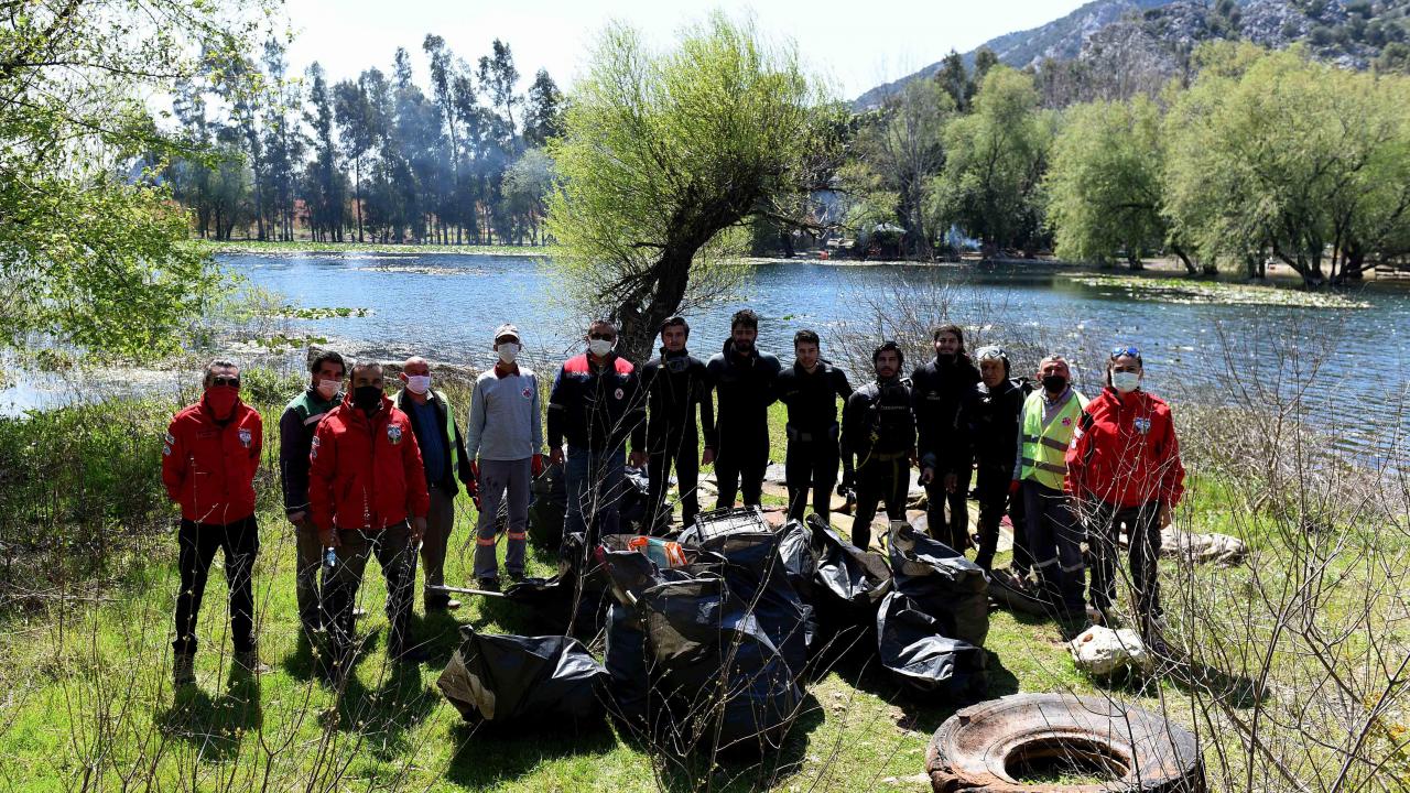 Su kaynağını korumak için girişlerin yasak olmasına rağmen bölgedeki kirlilik dikkat çekti. Doğaseverler, etrafa saçılmış ambalaj atıklarını, şişeleri tek tek topladı. Temizlik sırasında dev bir traktör lastiği de su kenarından çıkarıldı.
