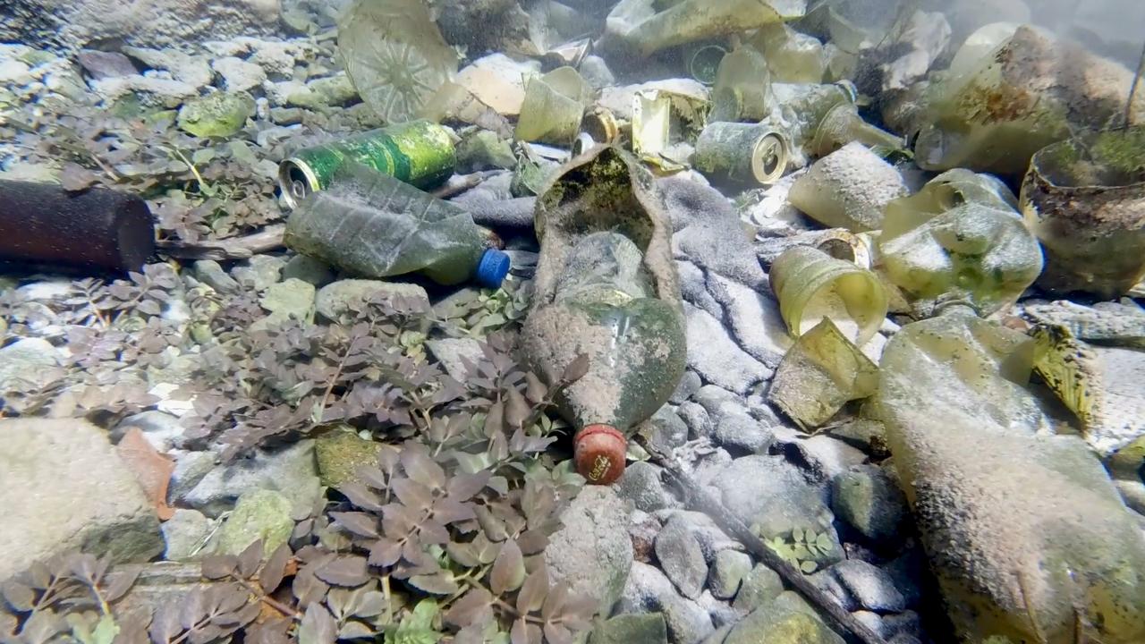 Antalya'nın doğal su kaynaklarından Kırkgözler'deki su altı temizliğinde, halı, masa, ayakkabı, inşaat atıkları, traktör lastiği, ve yüzlerce şişe çıktı.