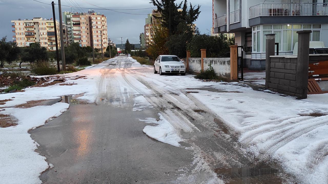 Yaklaşık yarım saat etkili olan dolu sonrası kent merkezi beyaza büründü.