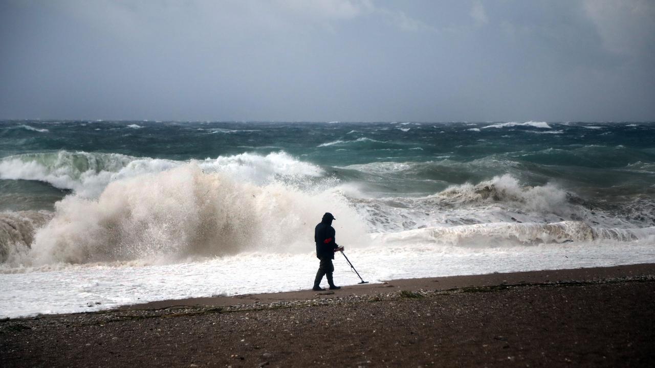 Lodos nedeniyle sahile defineciler de akın etti. Ellerinde elektronik dedektörlerle dalgaların aşındırdığı sahilde yürüyerek değerli eşya arayanlar, rüzgara ve yağmura aldırış etmedi.