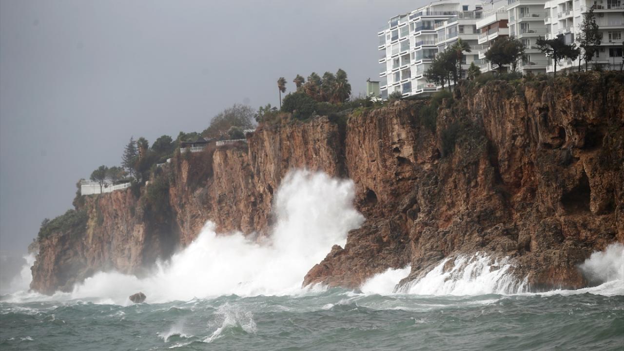 Rüzgar nedeniyle Kaleiçi Yat Limanı bölgesindeki falezlerde yüksekliği 4 metreyi bulan dalgalar oluştu. Limandaki balıkçılar, teknelerinin dalgalardan zarar görmemesi için çaba gösterdi.