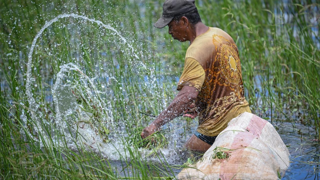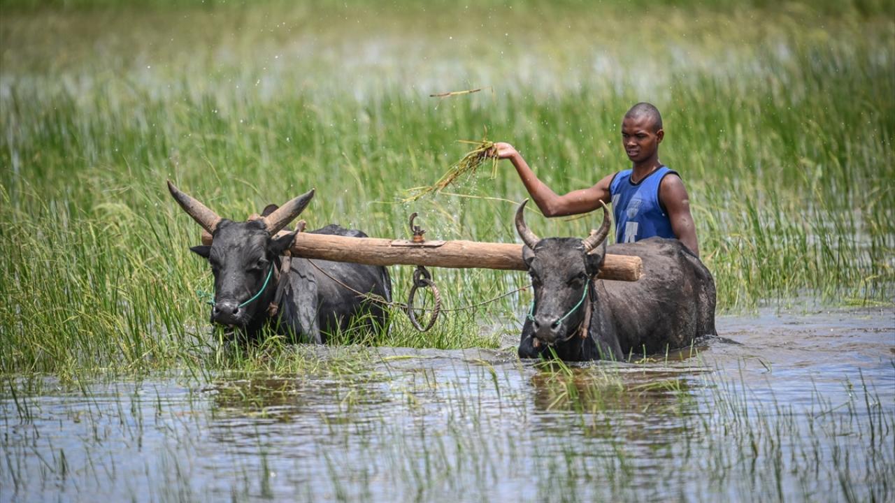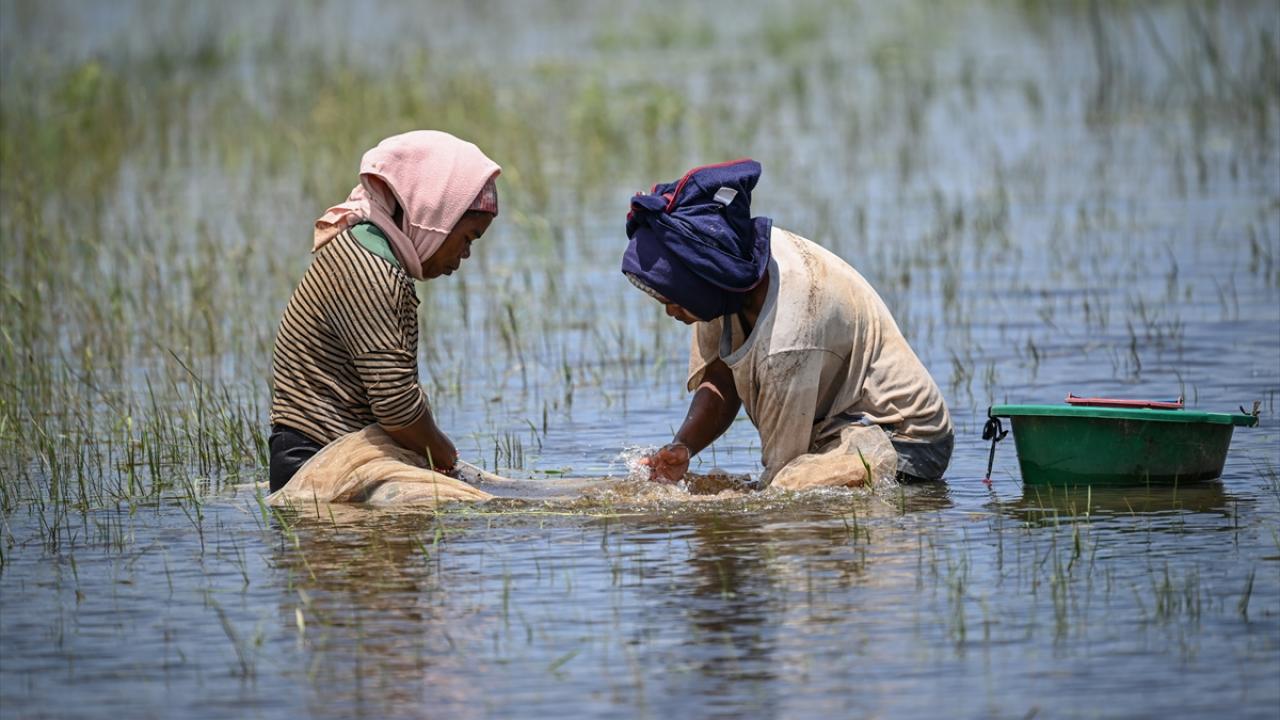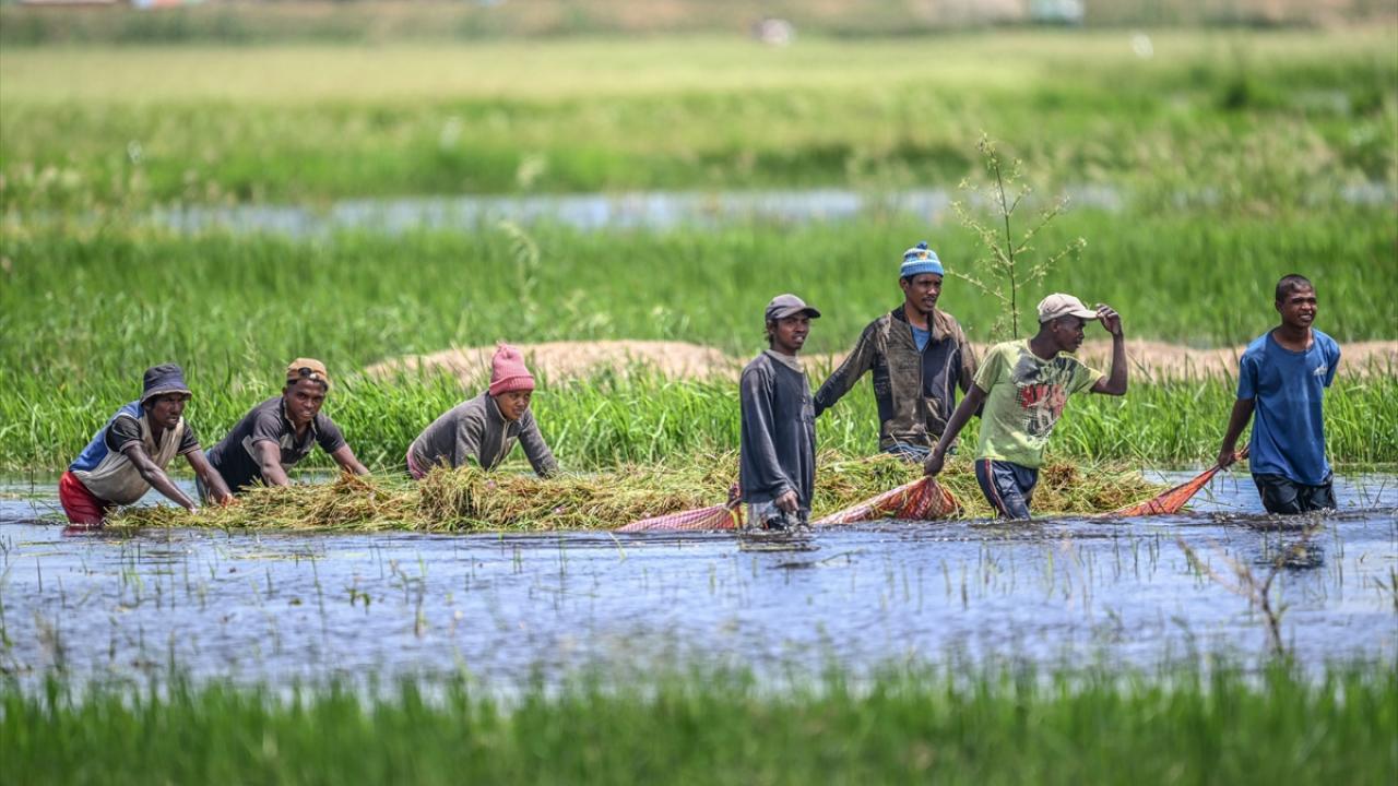İklim değişikliği nedeniyle yaşanan kuraklıklara ve gecikmiş yağmurlara direnç sağlayabilmesi için geliştirilen ’hibrit pirinç’’ ekimi yapan üreticiler, 36 dereceyi aşan sıcaklıklara rağmen yoğun ve zorlu mesai harcayarak üretim yapıyorlar.