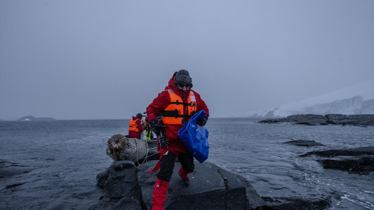 Bu kapsamda, bilim insanları gemiden karaya çıktıklarında ve geri geldiklerinde botlarını ve kıyafetlerini, Antarktika`nın flora ve faunasının korunması ve kıtaya ait olmayan türlerin taşınmasını önlemek amacıyla özel solüsyonlarla dezenfekte etti.