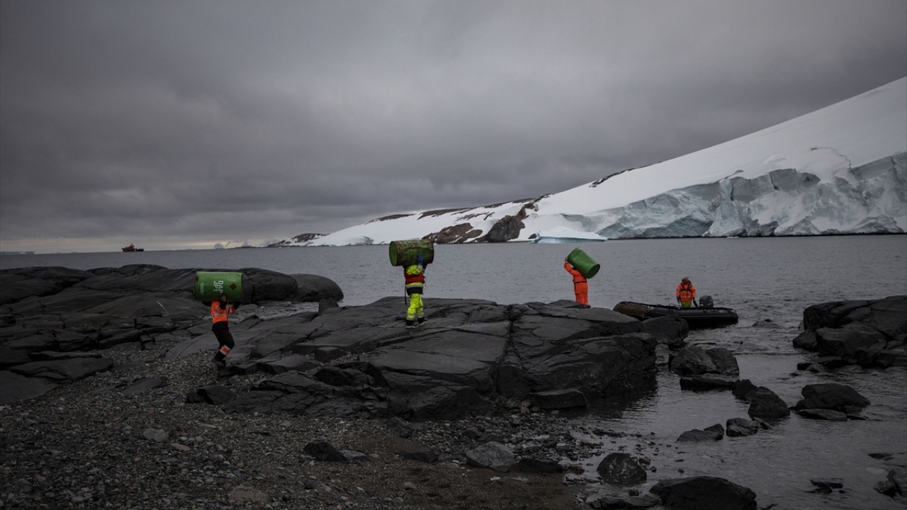 Olumsuz hava koşullarının iyileşmesiyle bilim insanları, Türk Bilimsel Araştırma Kampı’nın kurulumu için çalışmalara başladı.