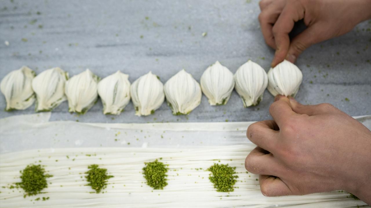 Bir ustanın el emeğiyle tepsisini ortalama 4-5 saatlik sürede hazırladığı Antep baklavası, Ramazan Bayramı öncesinde hem yurt içinden hem de yurt dışından talep görüyor.