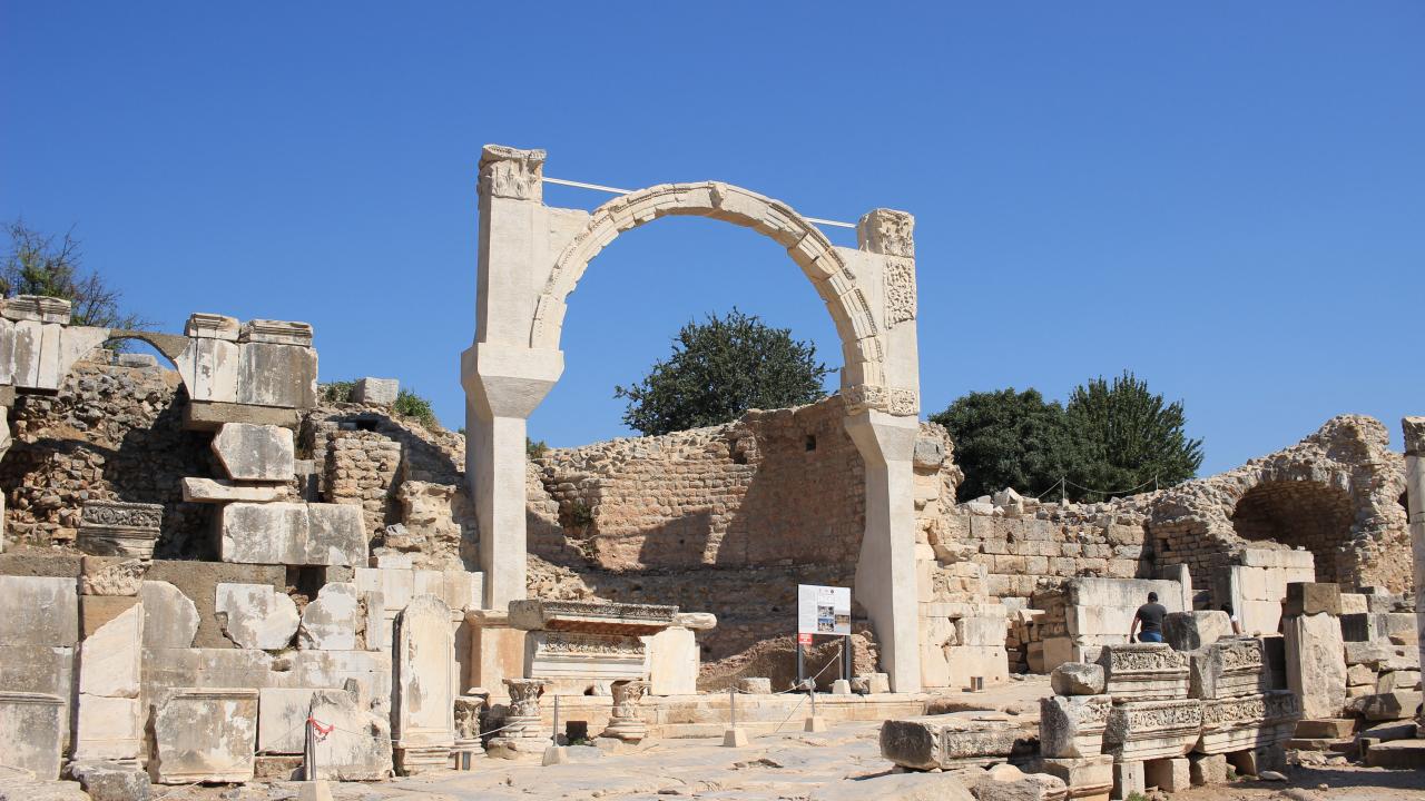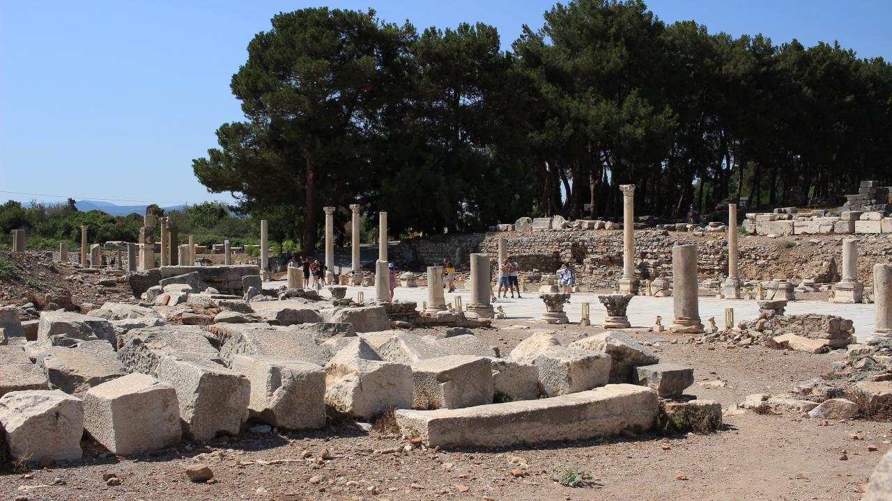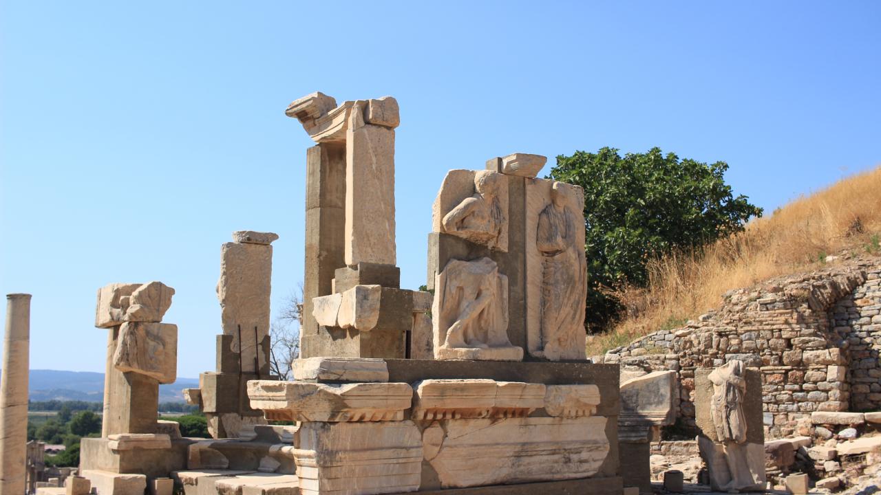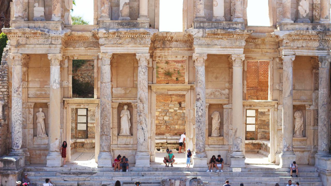 Efes Antik Kenti, Celsus kütüphanesi, antik tiyatro, yamaç evler ve önemli mimari eserleriyle yerli ve yabancı turistlerin ilgi odağı.