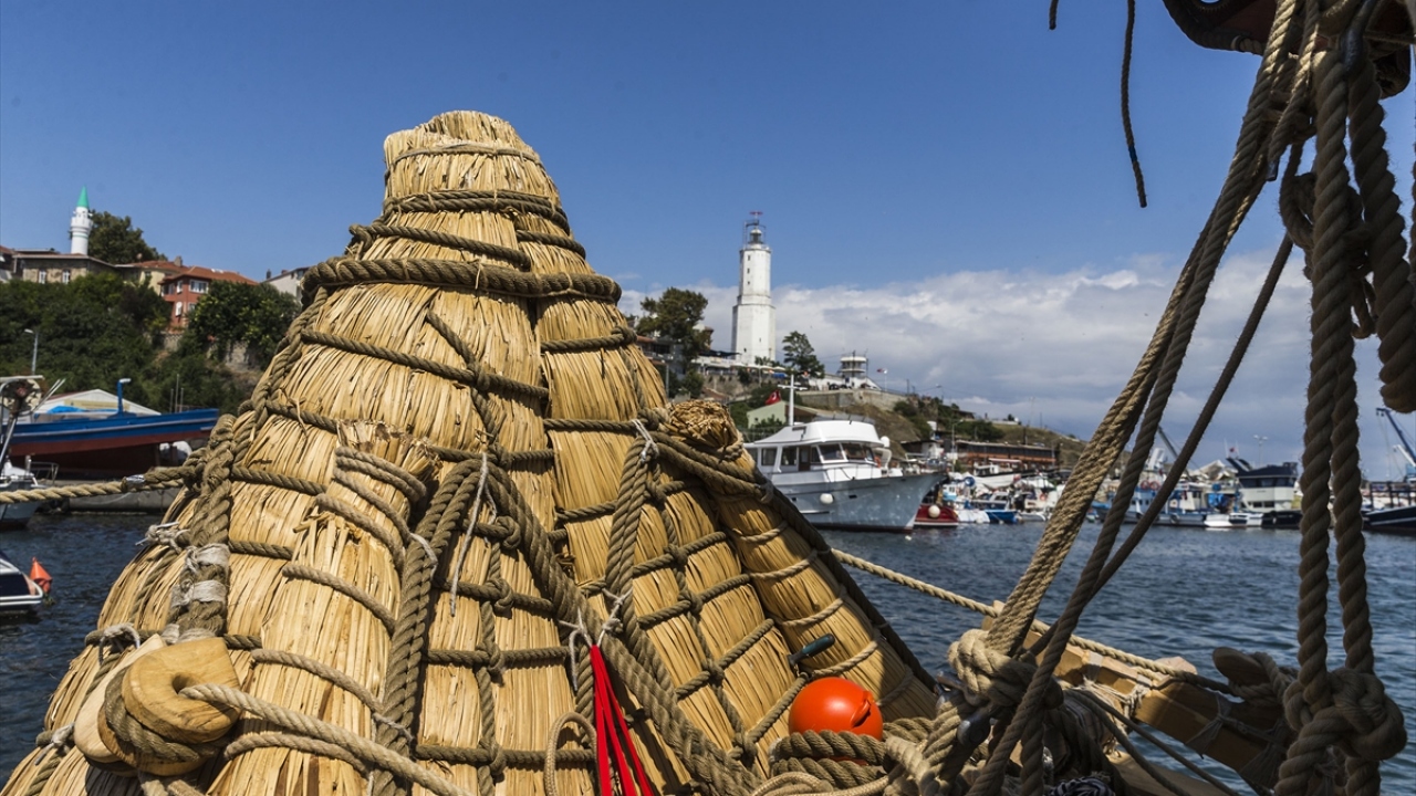Kamıştan yapılan antik gemi replikası Abora-IV, İstanbul`da Rumeli Feneri Limanı`na demirledi.
