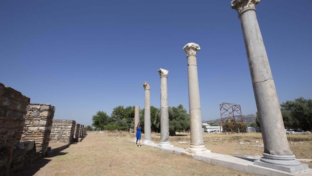 Zeytin ağaçlarının arasına yayılan Tralleis, manzarasıyla da ziyaretçilerini büyülüyor.