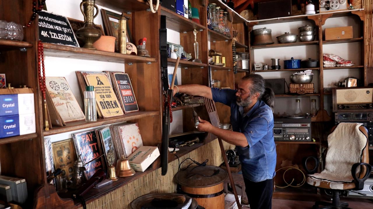 Eski yıllardan kalma binin üzerinde antika eşya biriktiren Bitim`in koleksiyonu, görenleri eski zamanlara götürüyor.