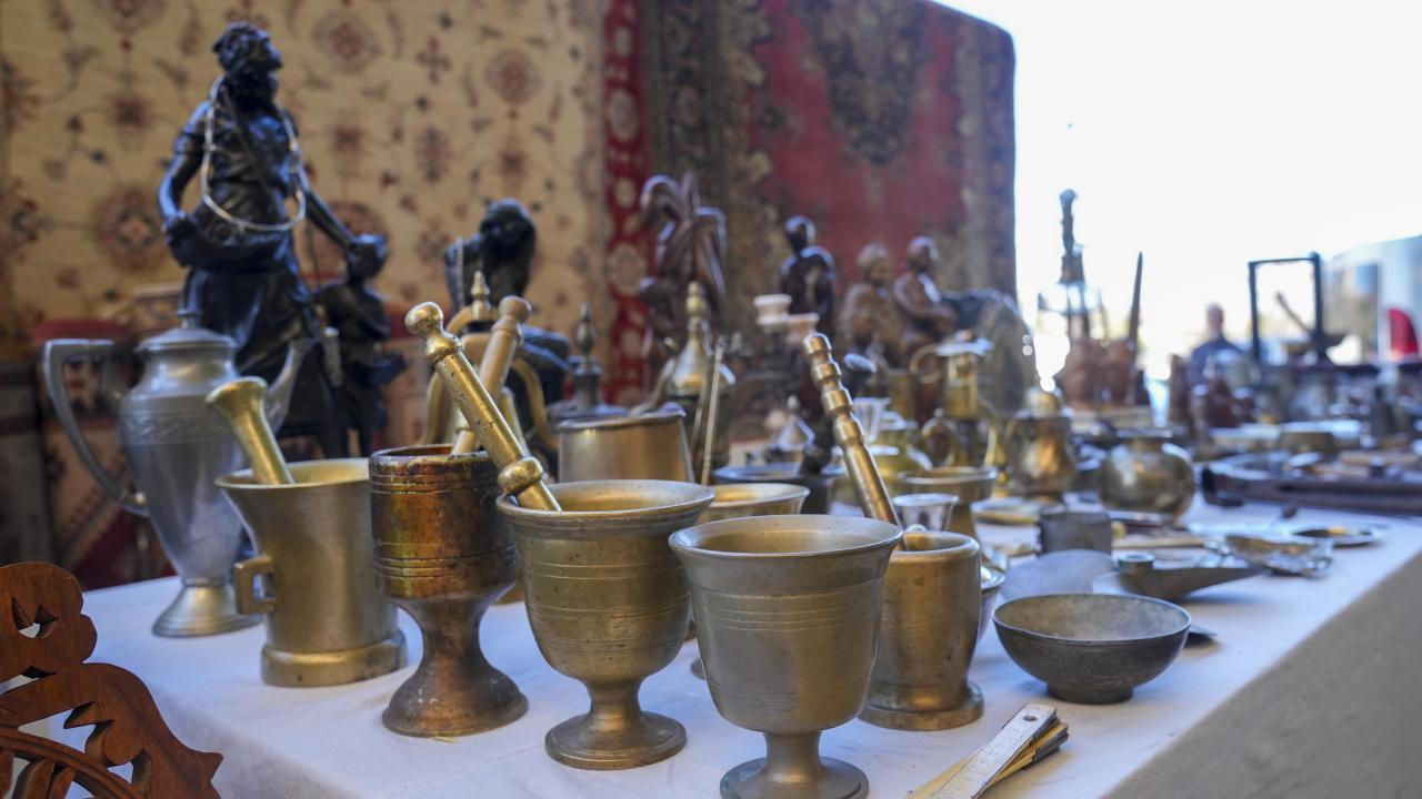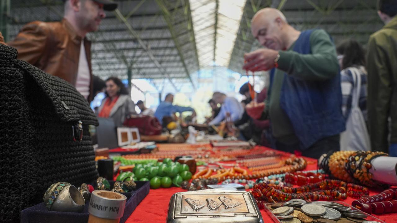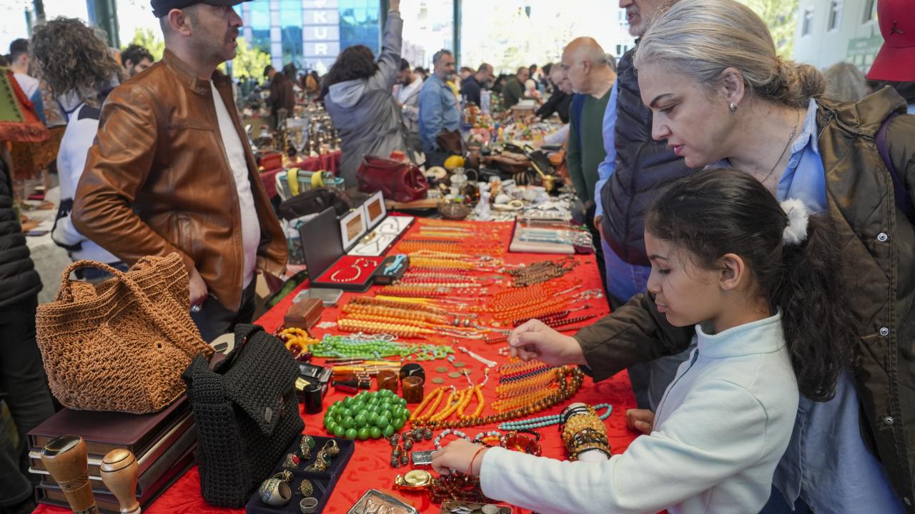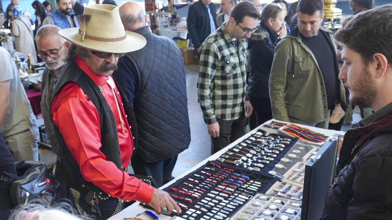 Pazarda ilgi çeken stantlardan biri de 20 yıl önce hobi olarak başladığı koleksiyonerliği meslek edinen Köksal Gülcemal`in tezgahı.