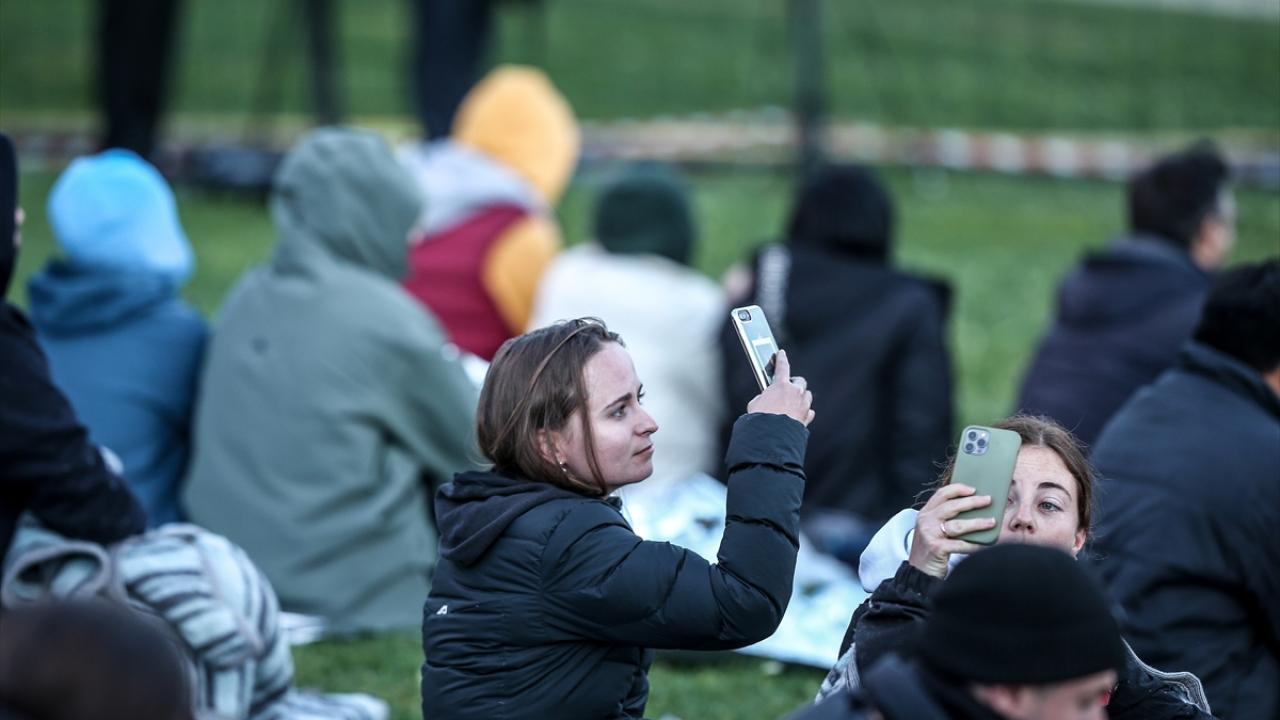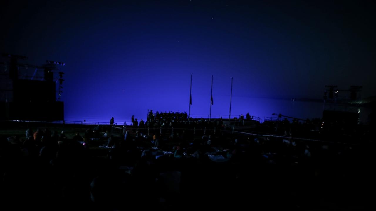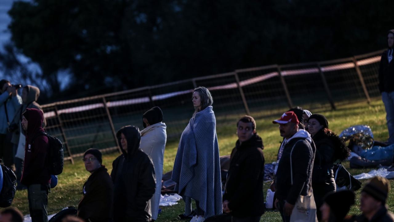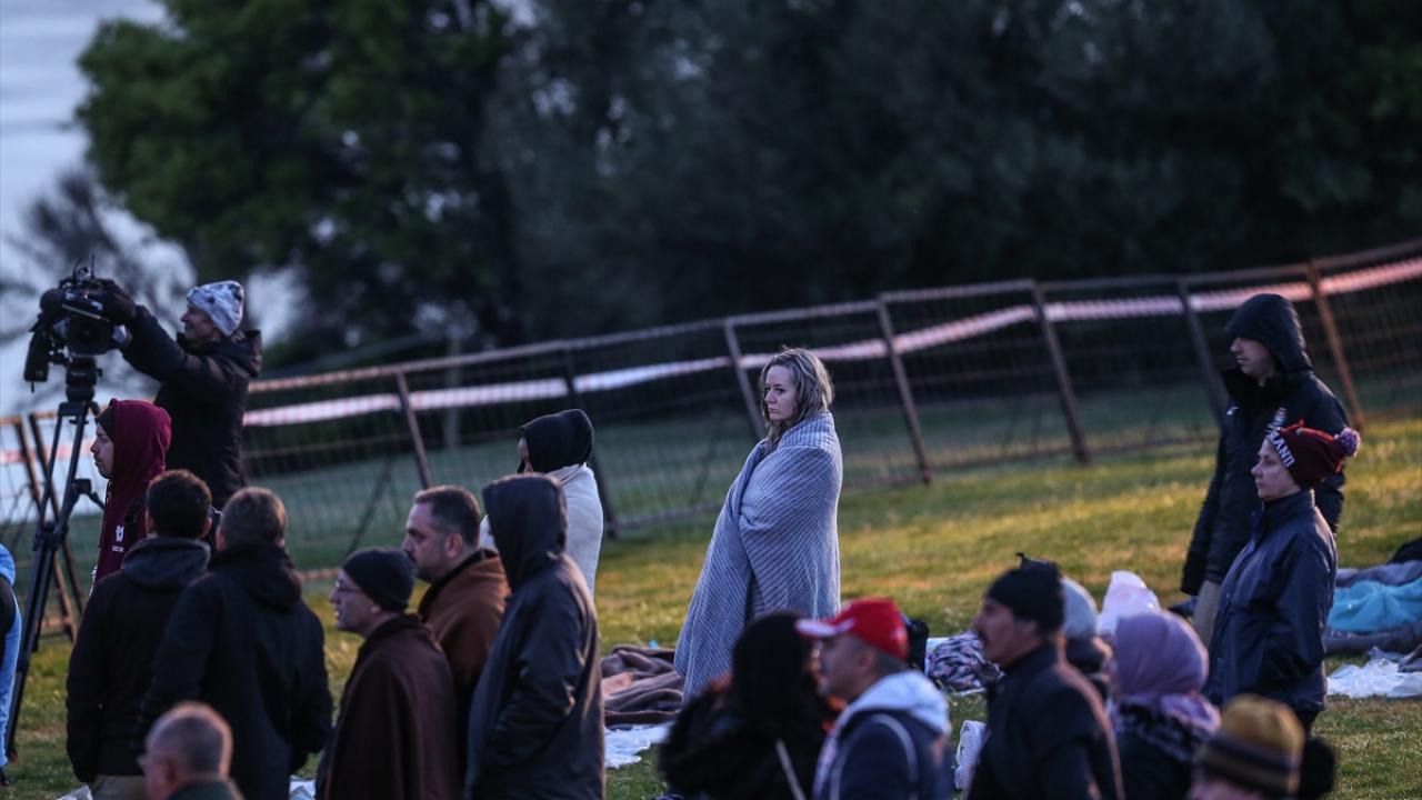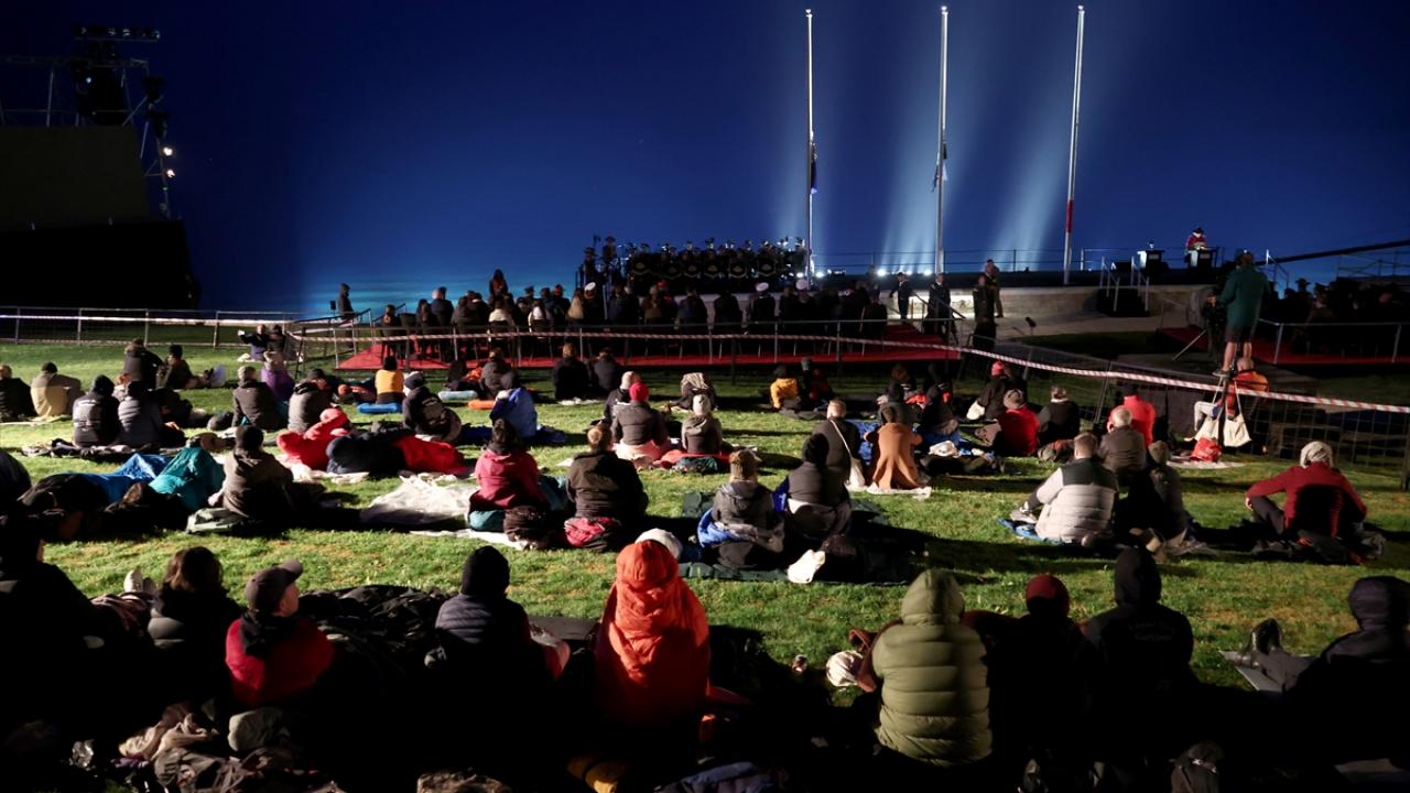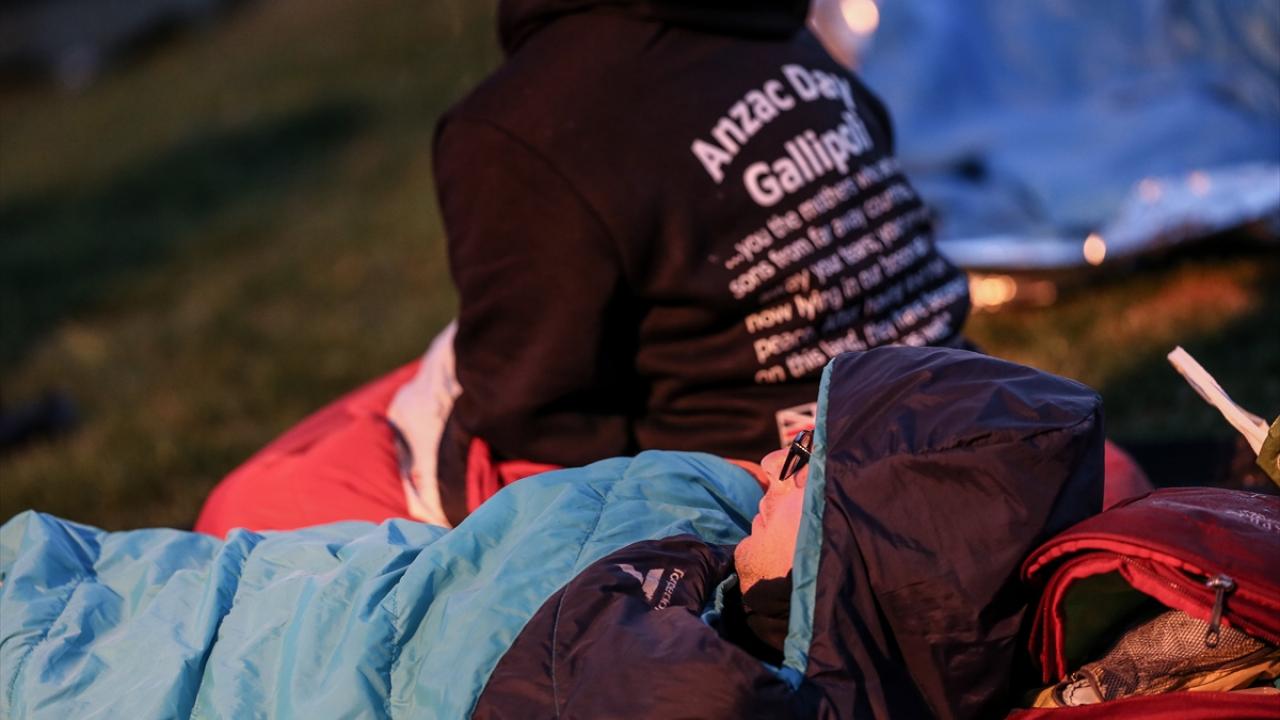 Katılımcılar, uyku tulumları ve battaniyeler içinde, tören alanına kurulan dev ekrandan Çanakkale Savaşları`na ilişkin belgesel, film, röportaj ve bazı kentlerdeki Anzak Günü törenlerini izleyerek "Şafak Ayini"nin başlamasını bekledi.