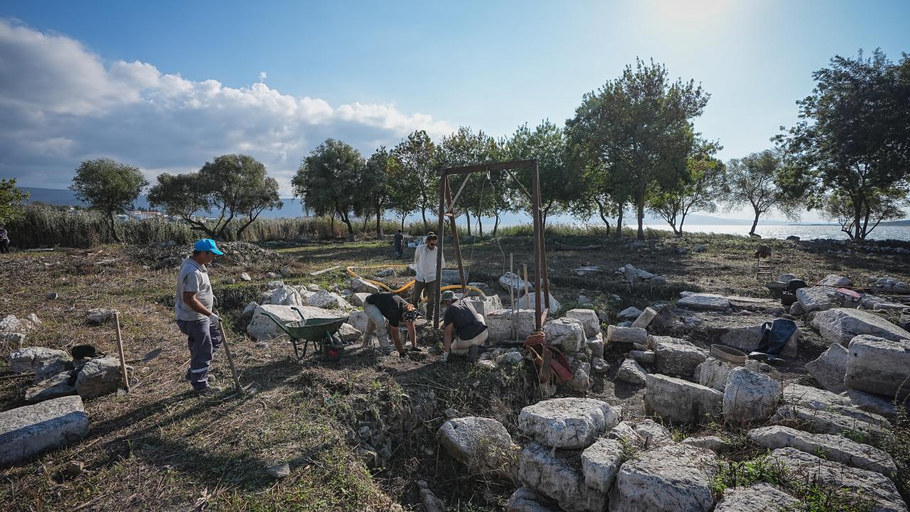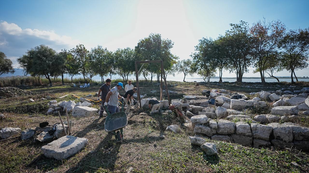 Bursa'nın Nilüfer ilçesinde, turistik Gölyazı Mahallesi'ndeki Kız Adası'nın Helenistik dönemdeki kutsal alan profili arkeolojik kazıyla gün ışığına çıkarılıyor.