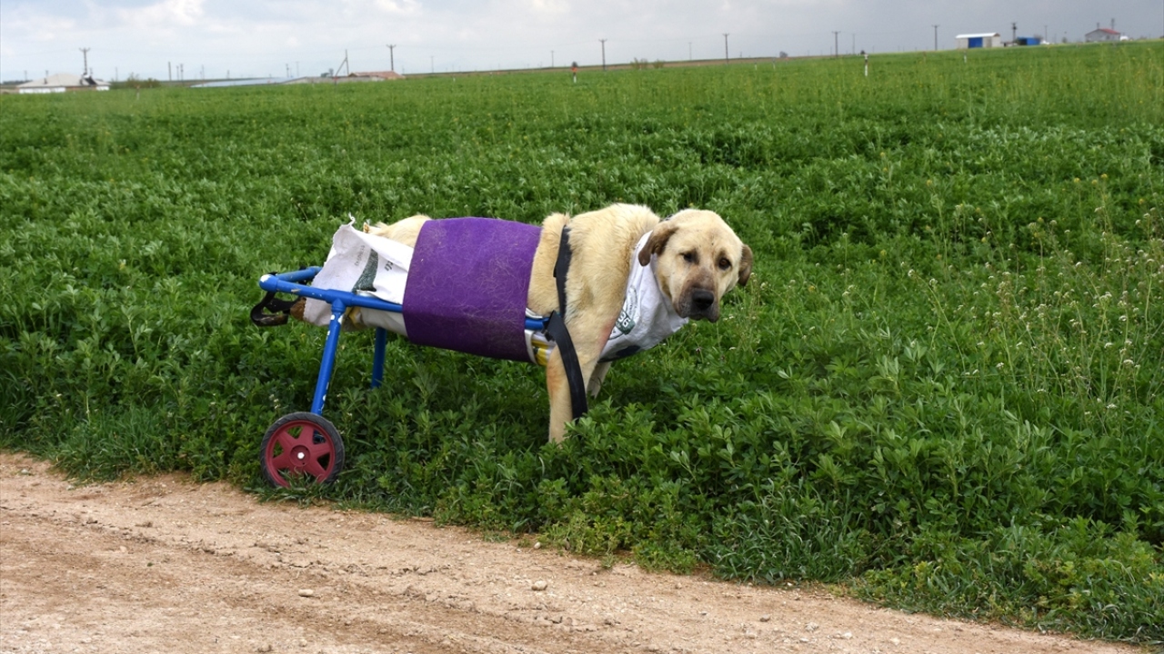 Aksaray'da bir hayvansever, arka ayakları tutmadığı için yürüyemeyen, "Karabaş" adını verdiği sokak köpeğini tekerlekli yürüteçle özgürlüğüne kavuşturuyor.