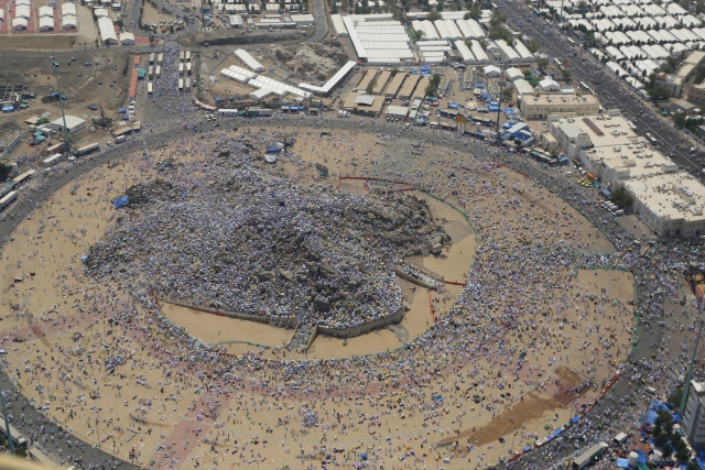 İslam'ın ilk beş şartından birisi olan Hac ibadetini gerçekleştirmek üzere Kutsal topraklarda bulunan 2 milyondan fazla hacı adayının önemli bir durağı olan Arafat havadan görüntülendi.