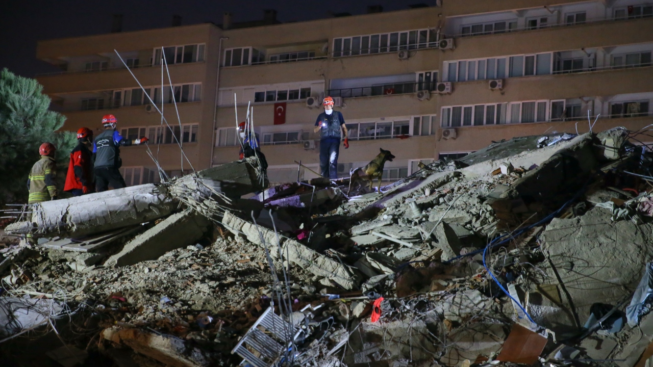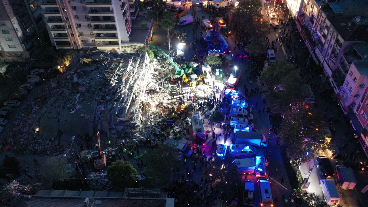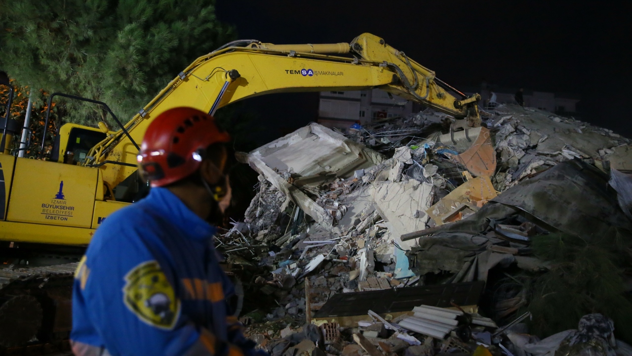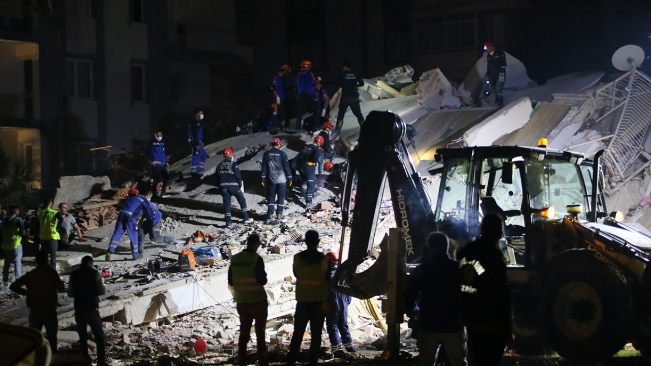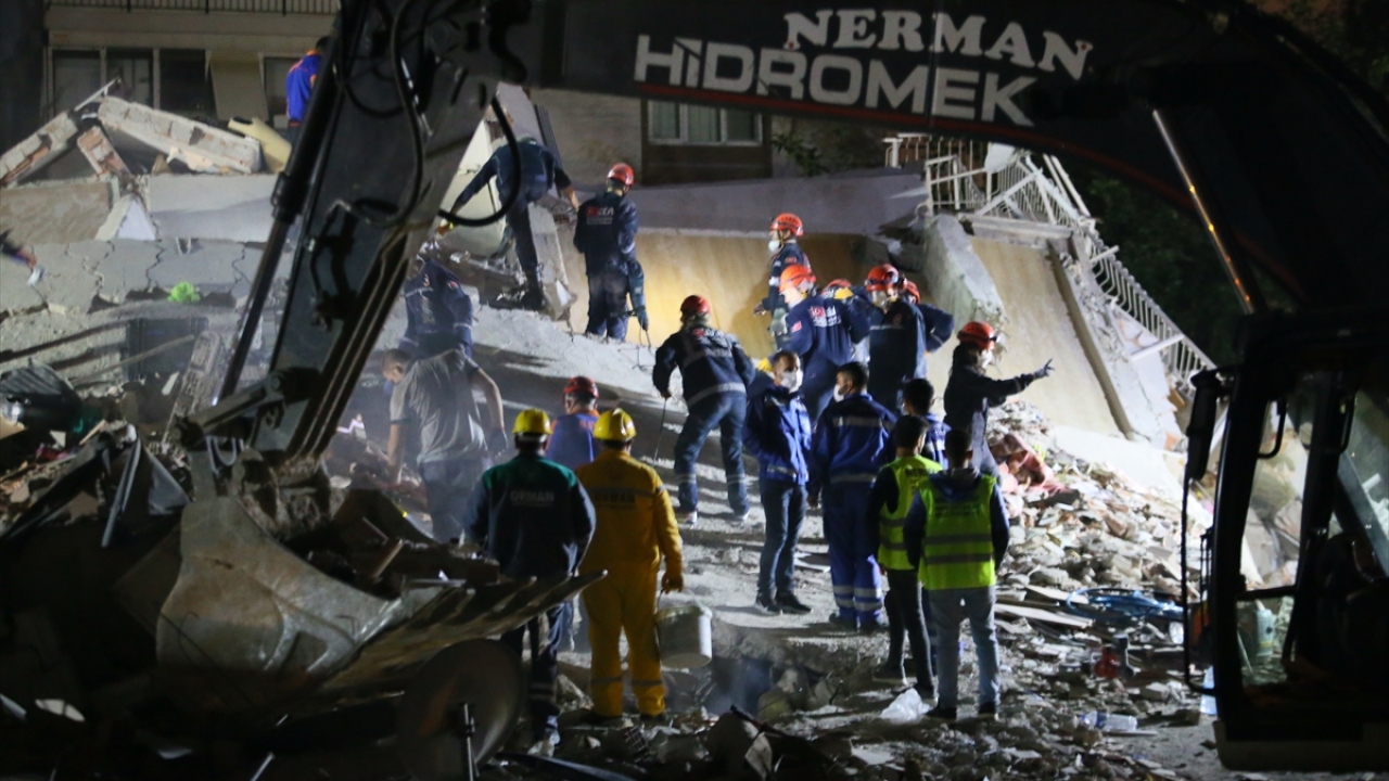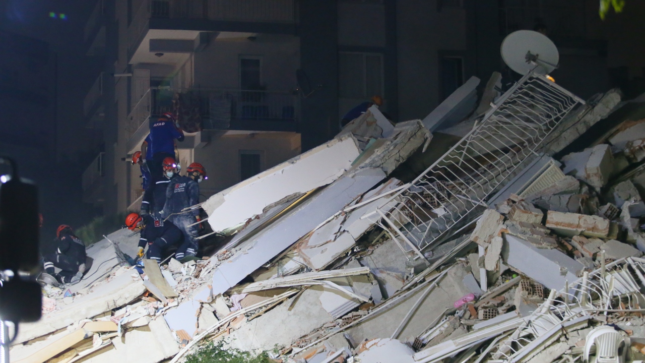 Deprem sonrası İzmir Bayraklı`da yıkılan bir binada arama ve kurtarma çalışması devam ediyor.