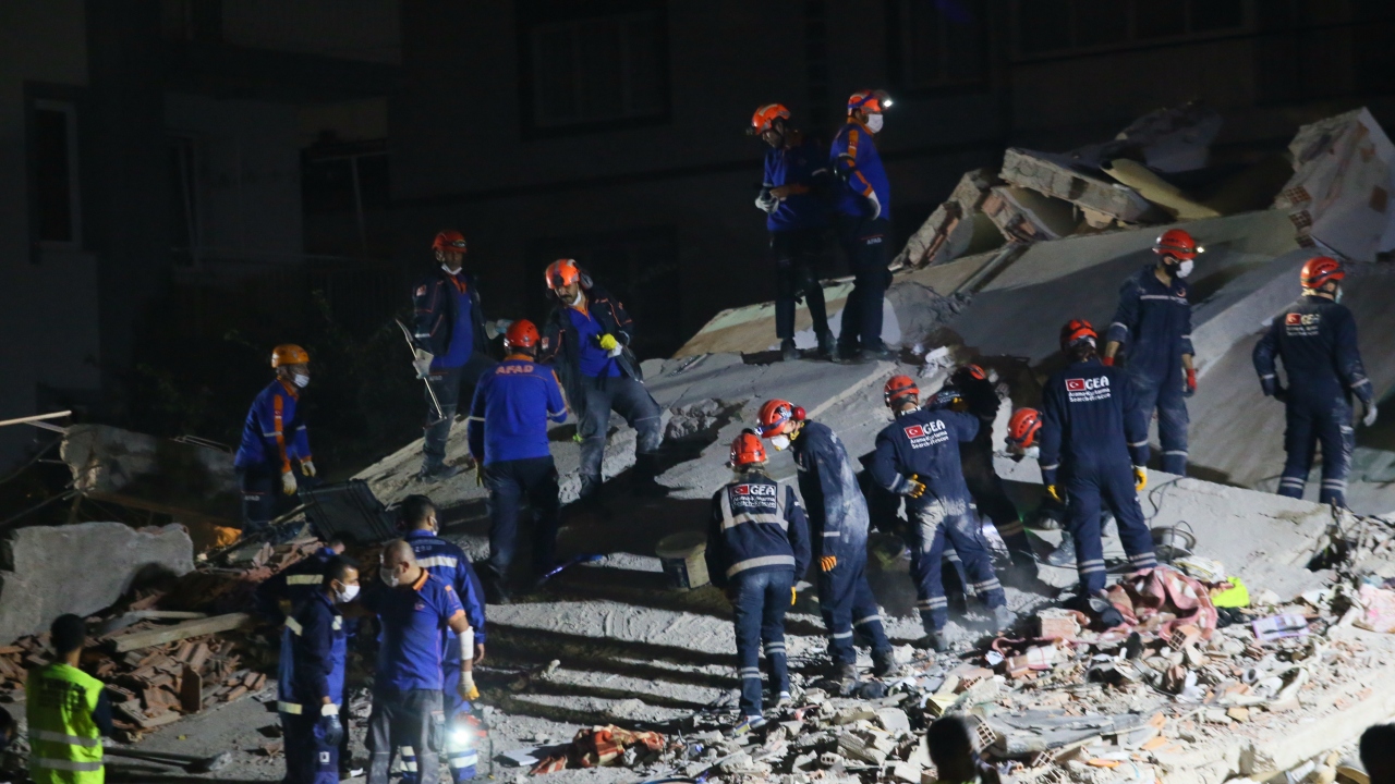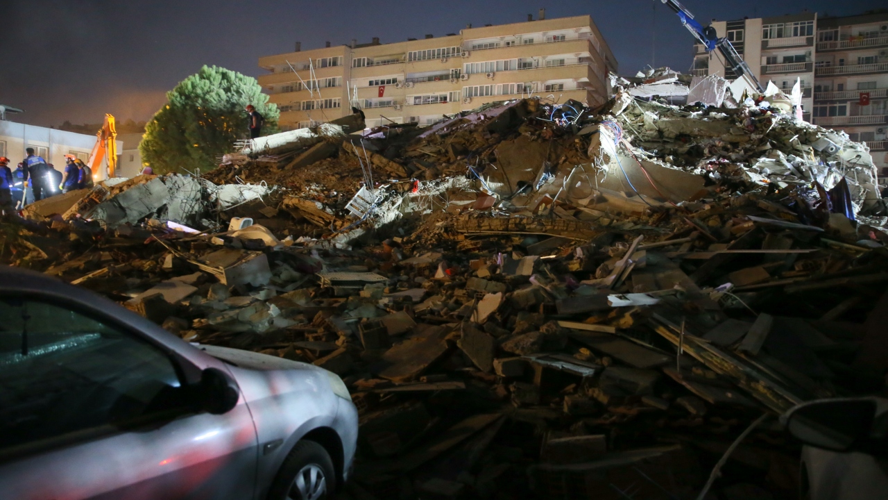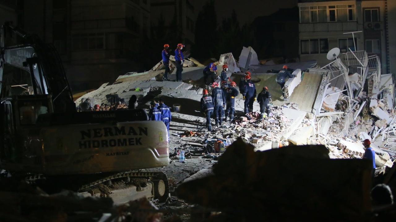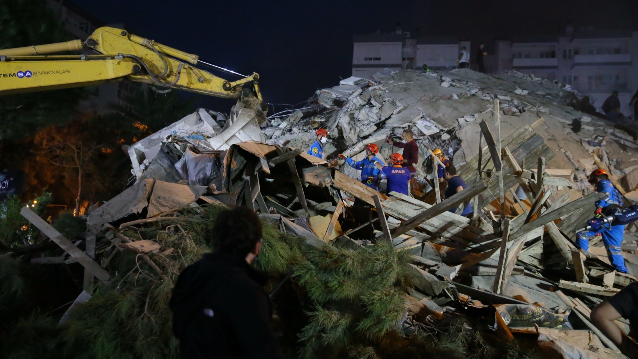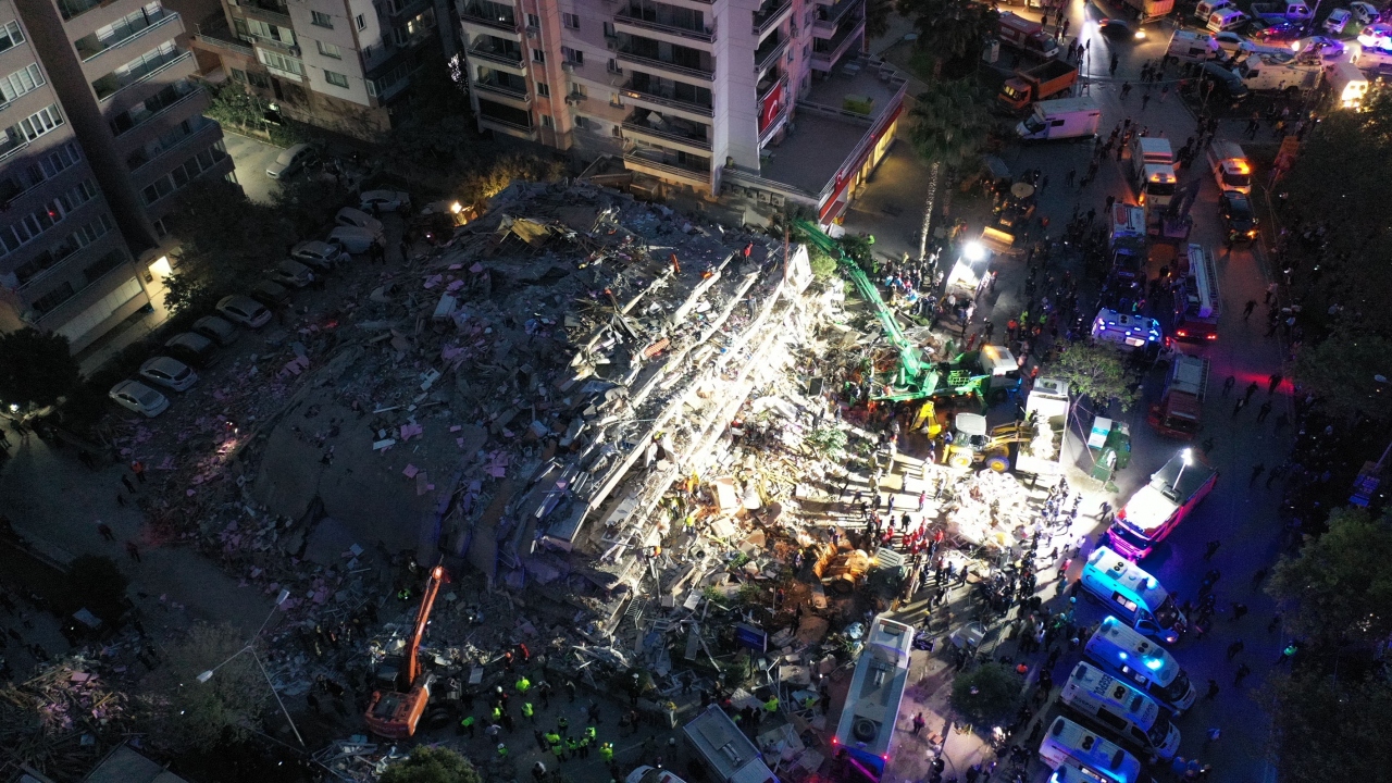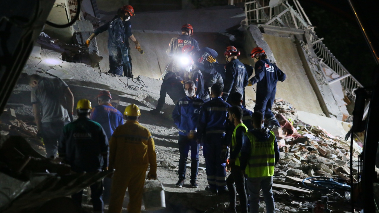 Deprem sonrası İzmir Bayraklı`da yıkılan bir binada arama ve kurtarma çalışması devam ediyor.