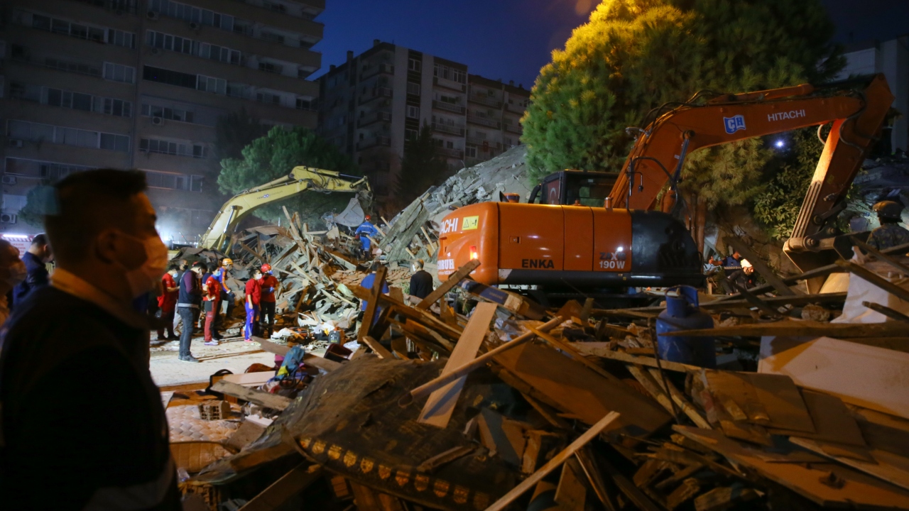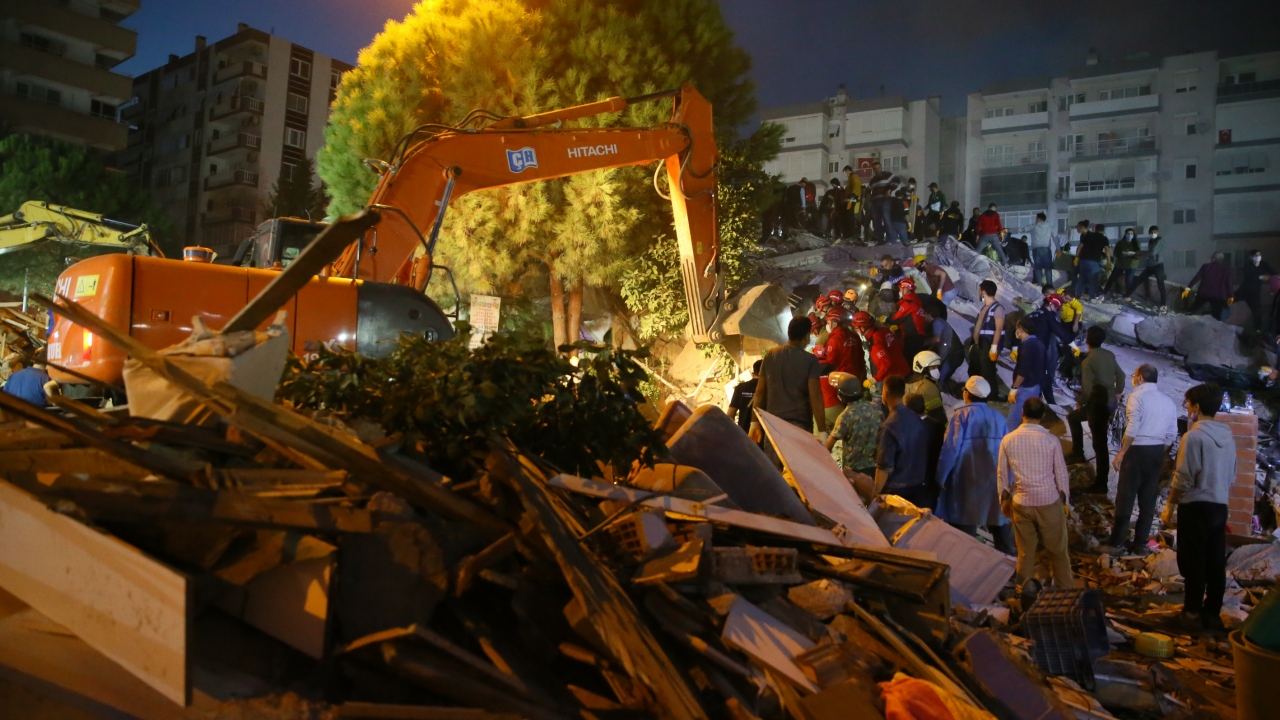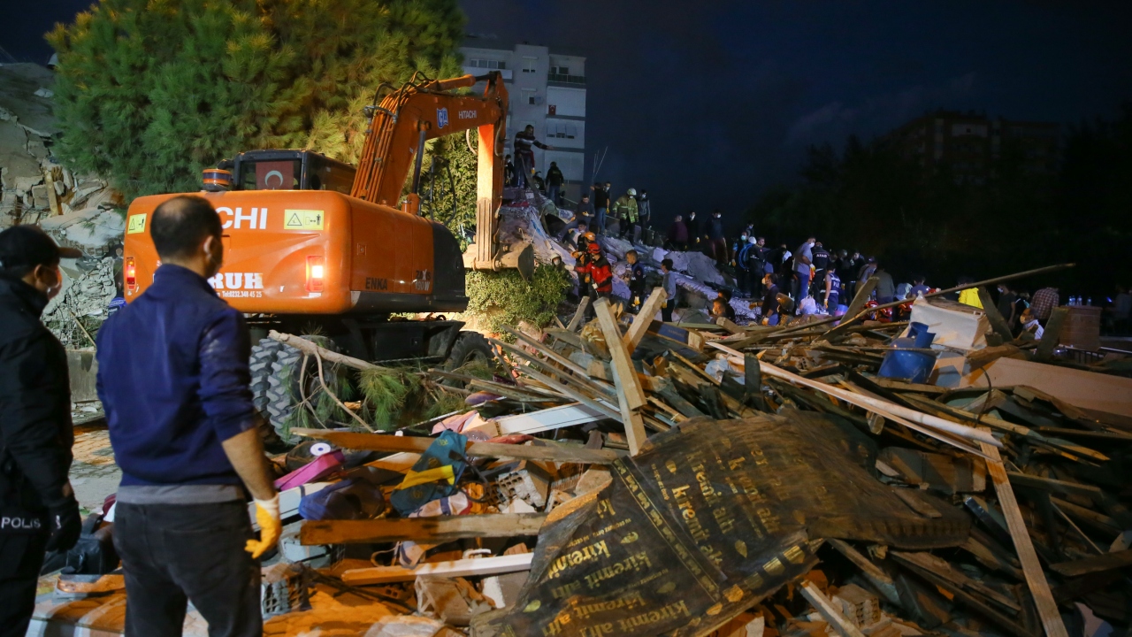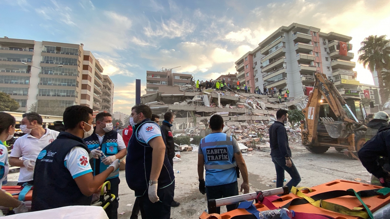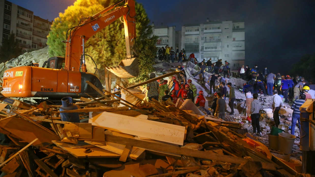 Deprem sonrası İzmir Bayraklı`da yıkılan bir binada arama ve kurtarma çalışması devam ediyor.