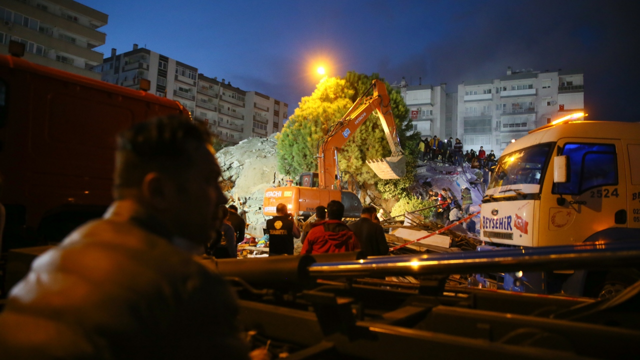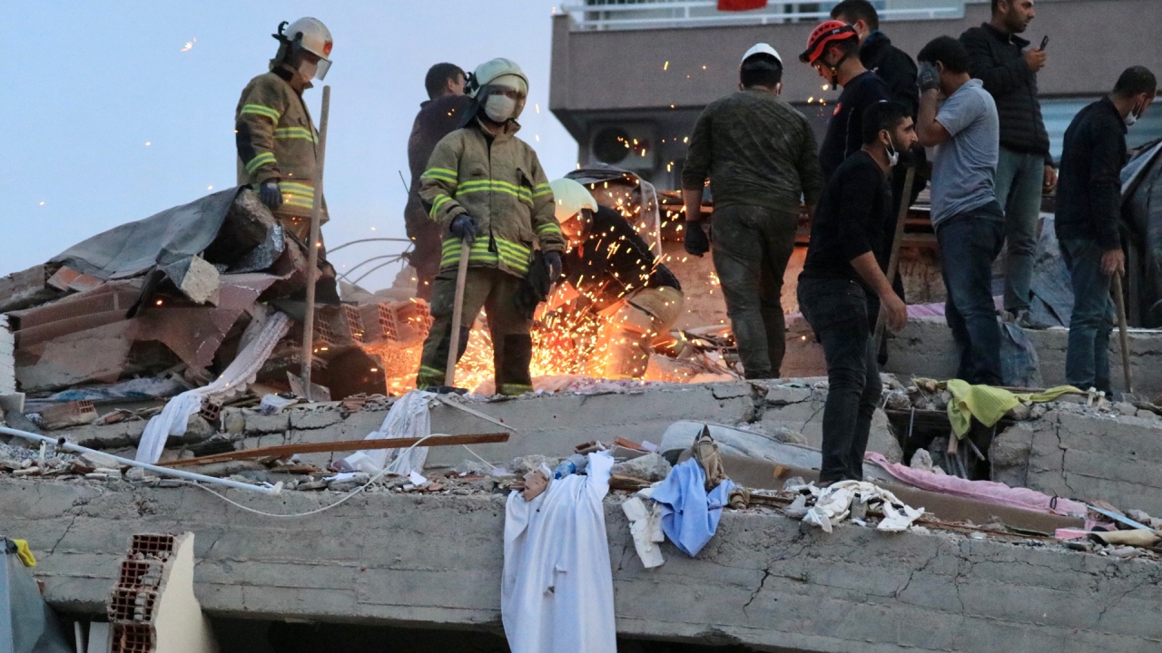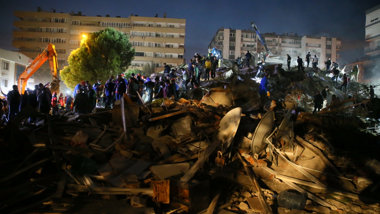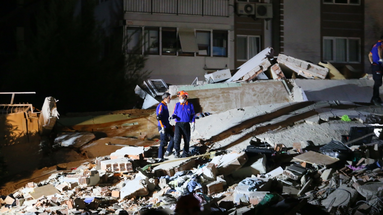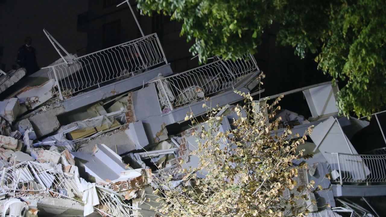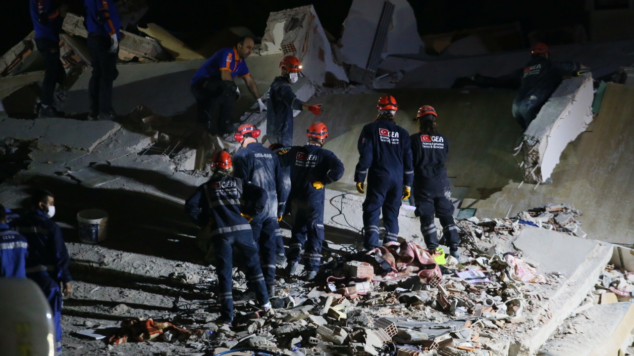 Deprem sonrası İzmir Bayraklı`da yıkılan bir binada arama ve kurtarma çalışması devam ediyor.