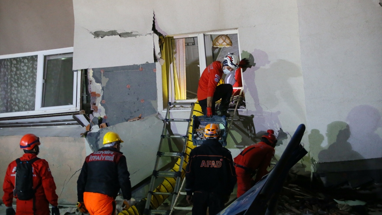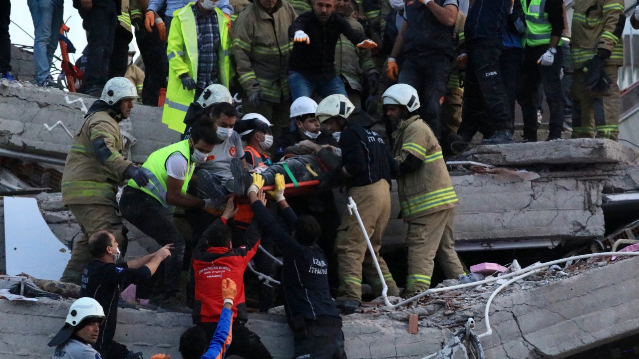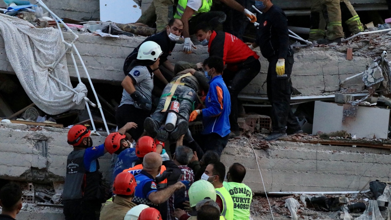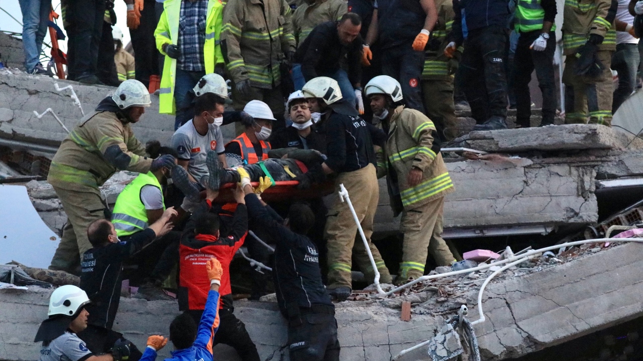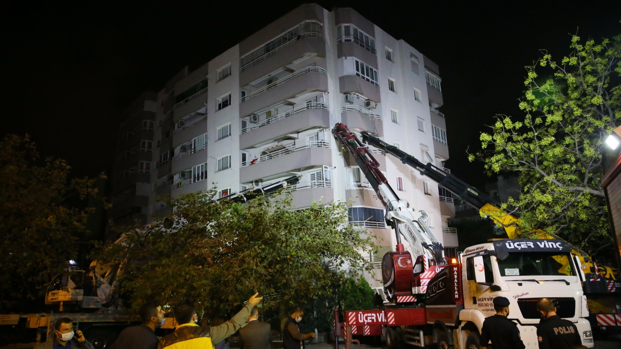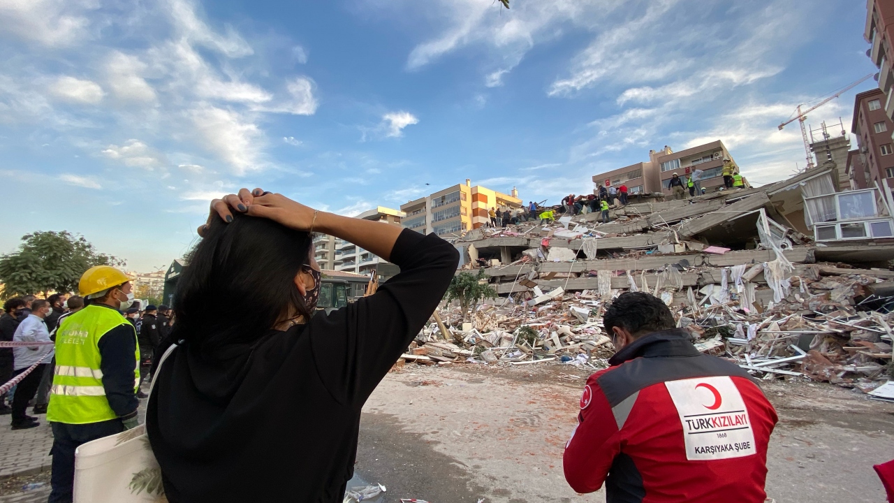 Deprem sonrası İzmir Bayraklı`da yıkılan bir binada arama ve kurtarma çalışması devam ediyor.