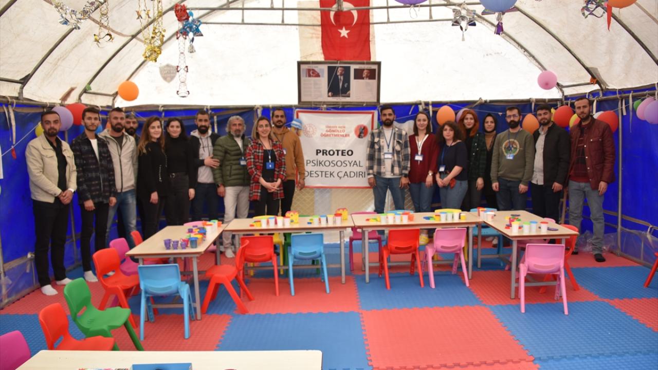 Çocuklar için çadır kurup destek vermeyi kararlaştırdıklarını belirten Ayyıldız, "Çadırımızın ismini, `Proteo` koymak istedik. Çünkü Proteo, sevgili hayvan dostumuz, Meksika`dan Türkiye`ye arama kurtarma çalışmaları için gelen köpeğimizdi ancak burada yaşamını yitirdi. Bizim için sergilediği desteği unutmamak, anmak adına çadırımıza bu ismi vermek istedik." dedi.