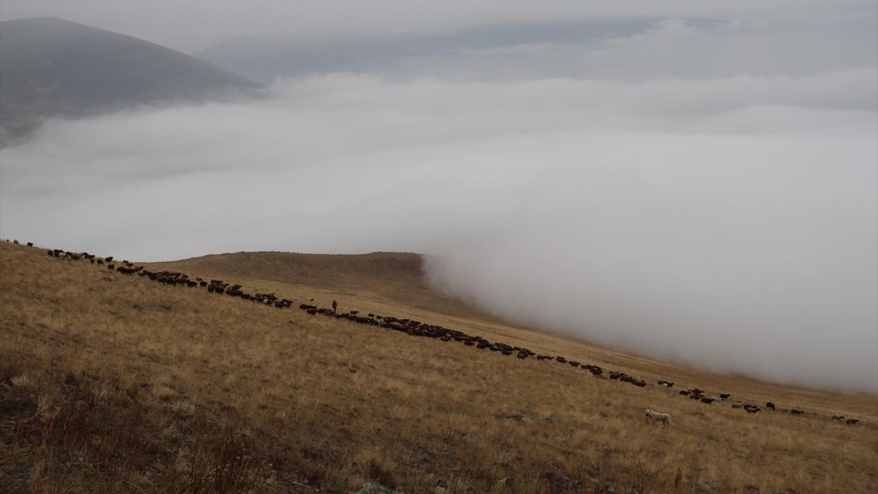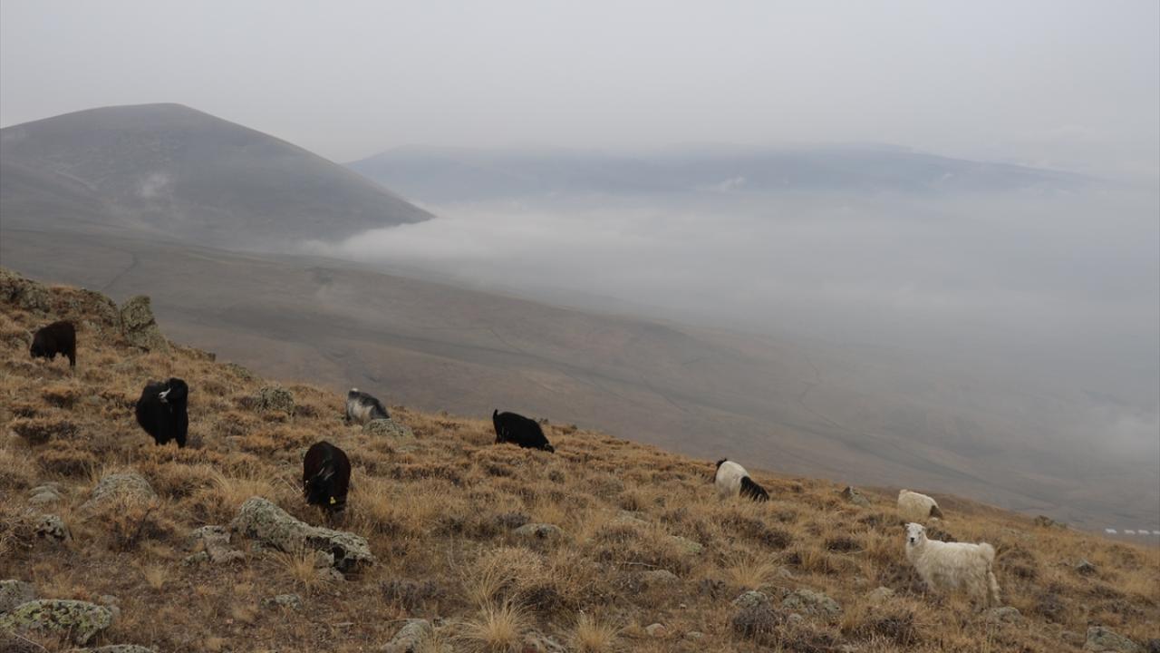 Yüksekliği 2 bin 500 metrenin üzerinde olan Aras Dağları`nın sisler içindeki manzaraları Anadolu Ajansı ekibince görüntülendi.