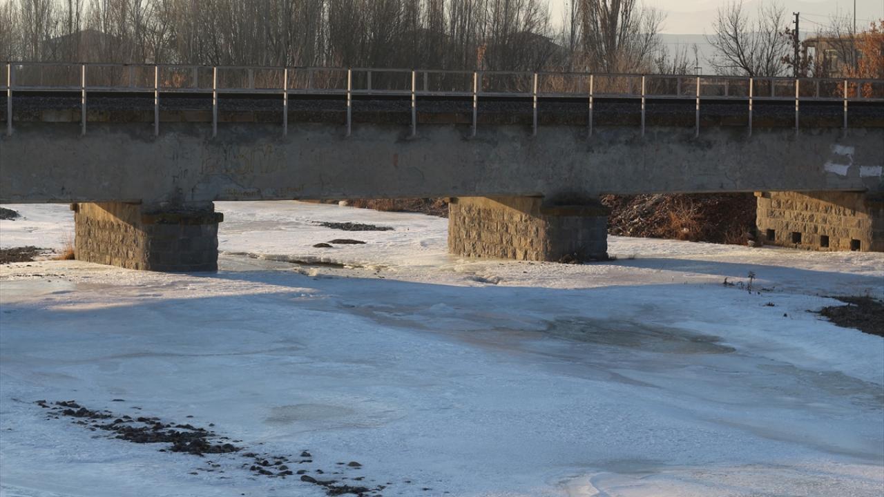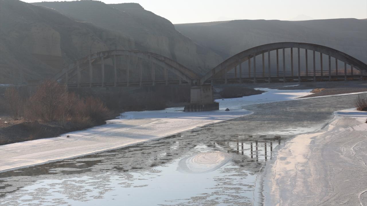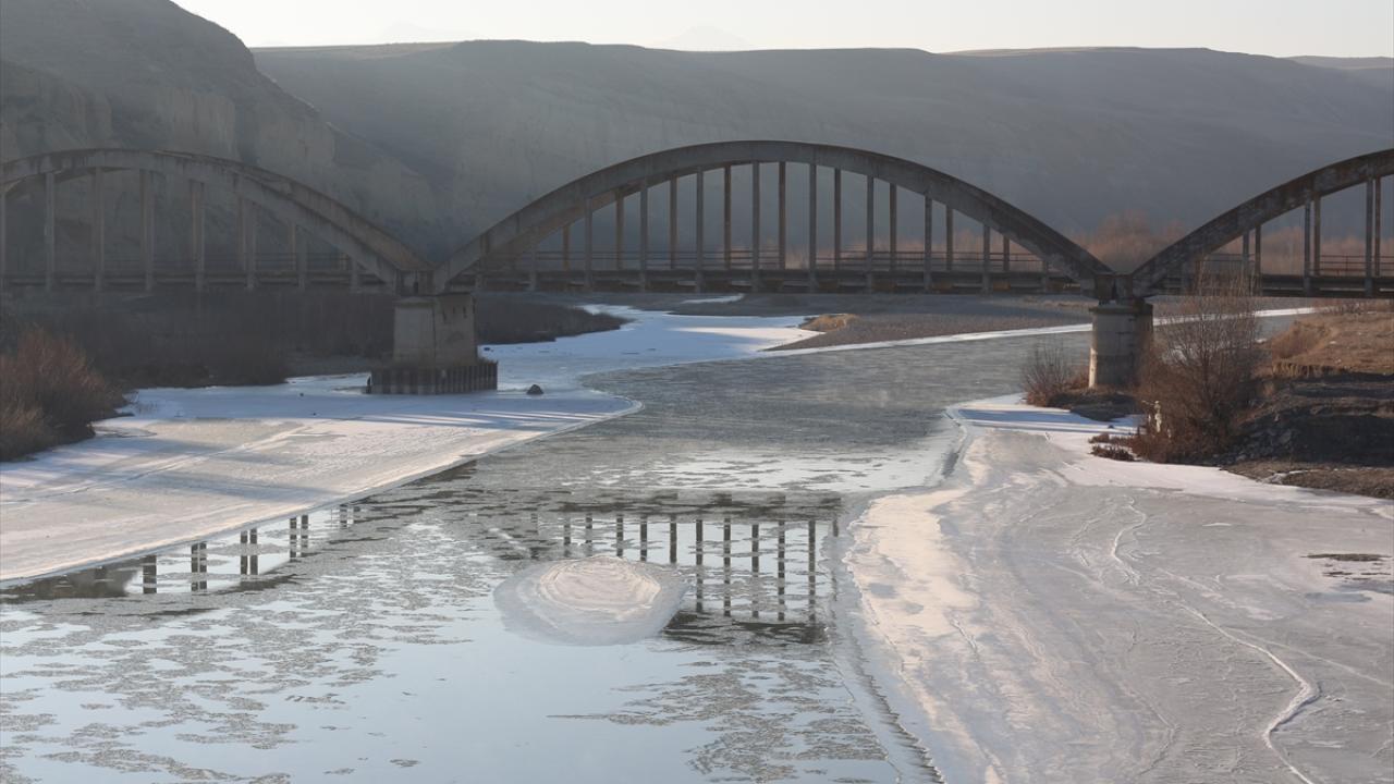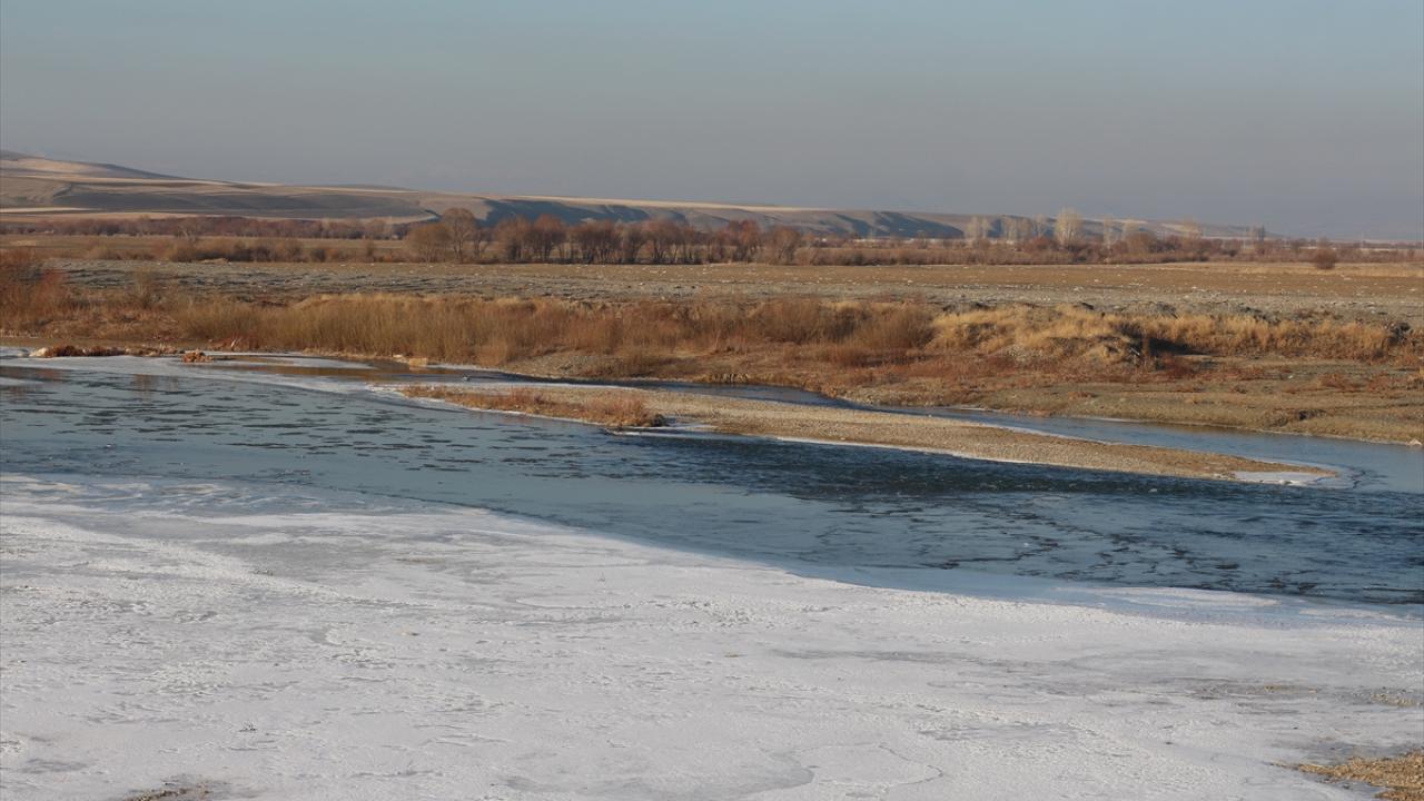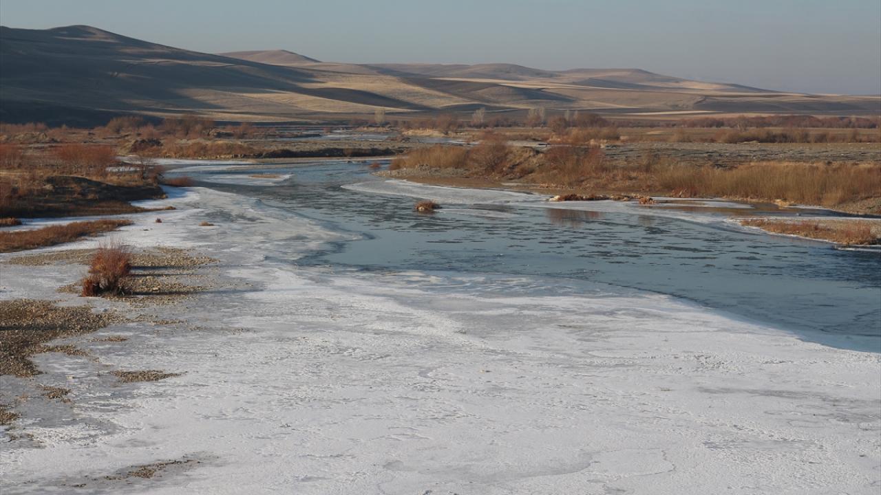 Soğuk havanın etkisiyle Erzurum-Kars kara yolundaki Aras Nehri ile Zars Çayı`nın yüzeyi buz tuttu.