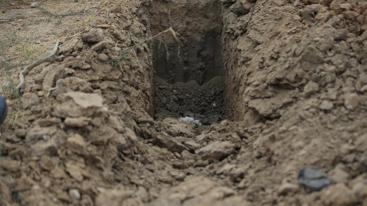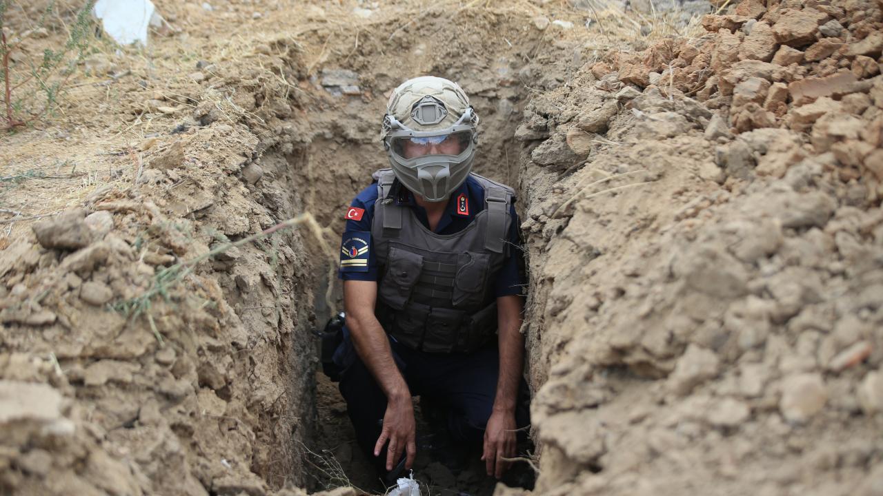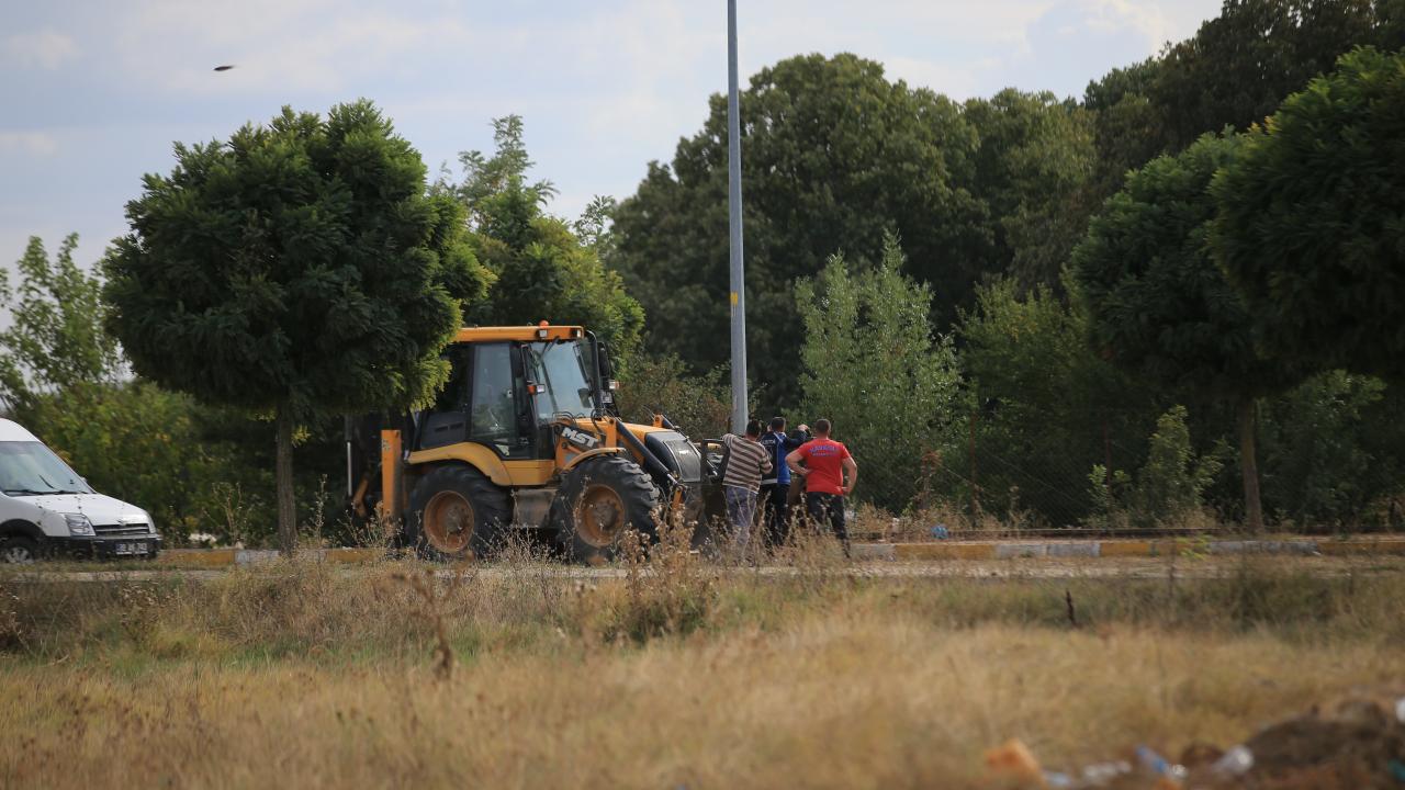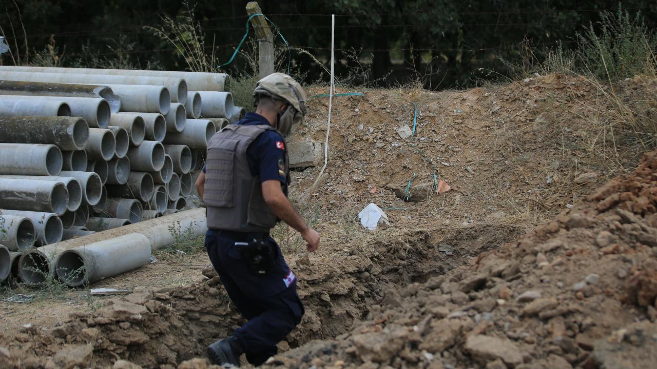 Bomba imha ekibinin incelemelerinin ardından el bombası iş makinesi ile açılan çukurda imha edildi.