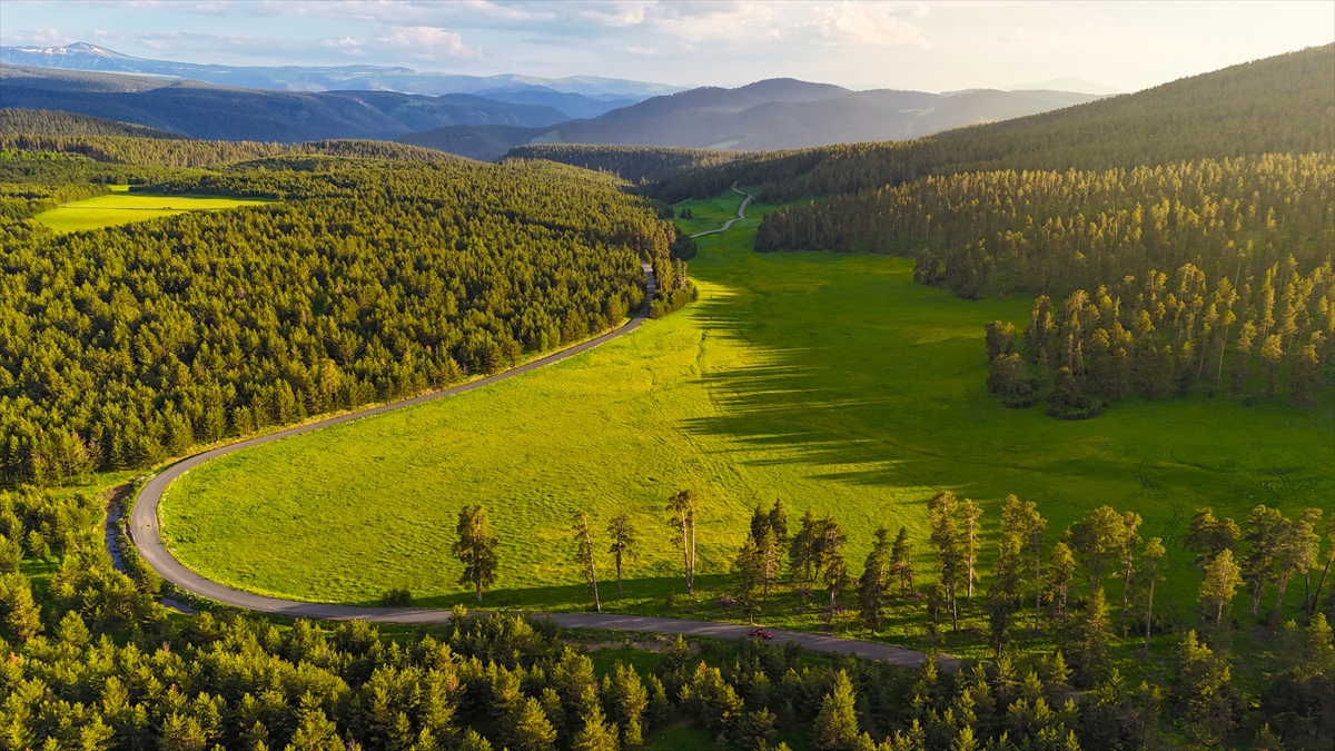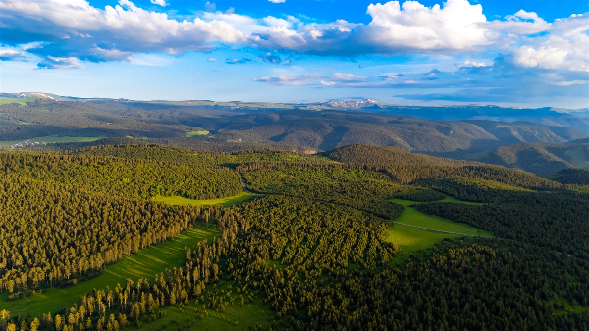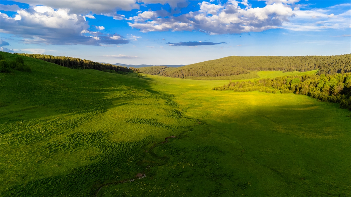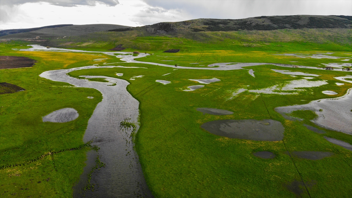 Ardahan'ın Göle ilçesi, yağışların ardından yeşile büründü.