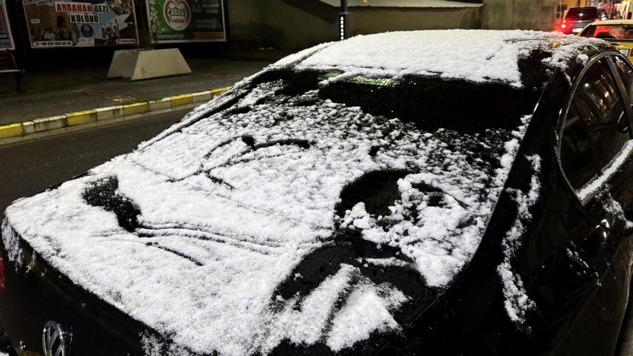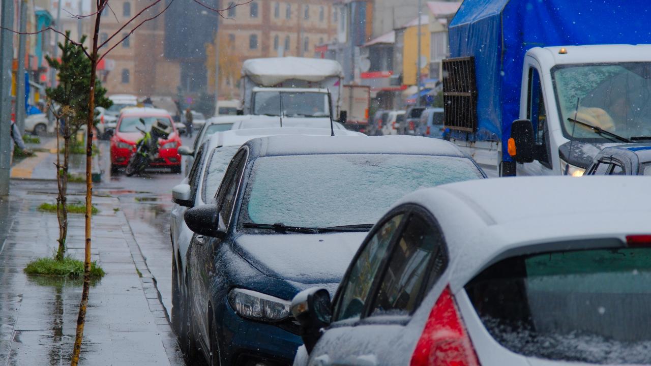 Kısa süreli etkili olan kar nedeniyle araçların üstü ve yeşil alanlar beyaza büründü.