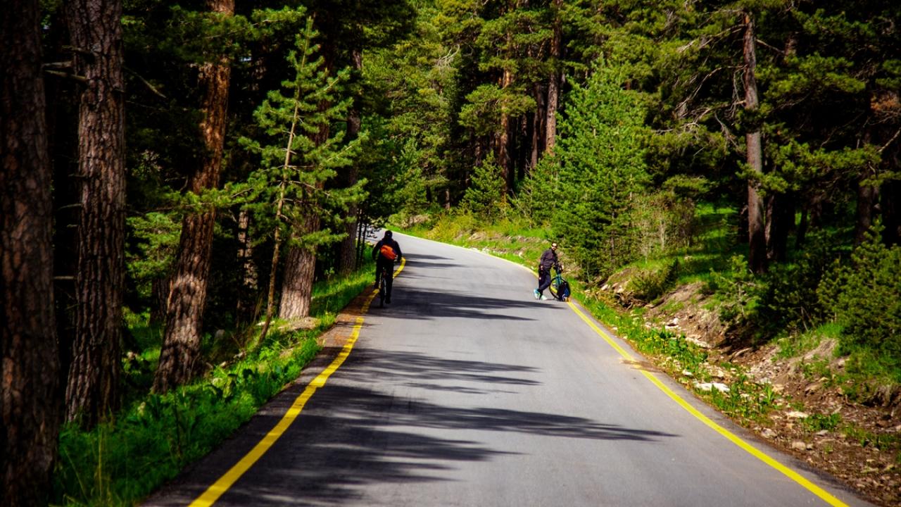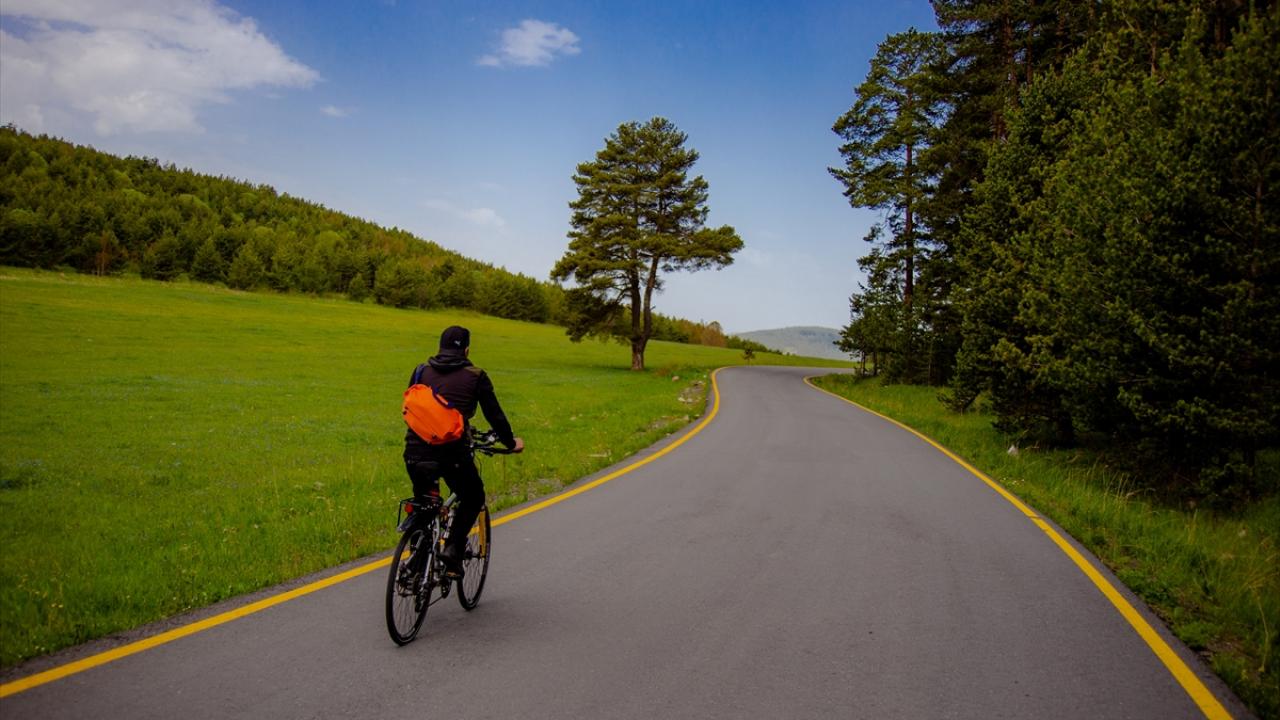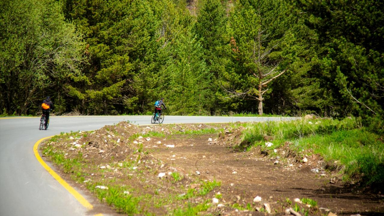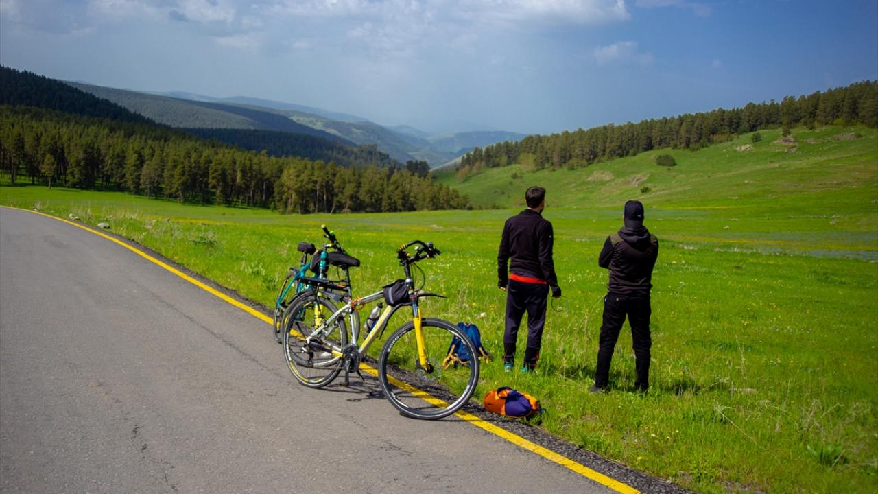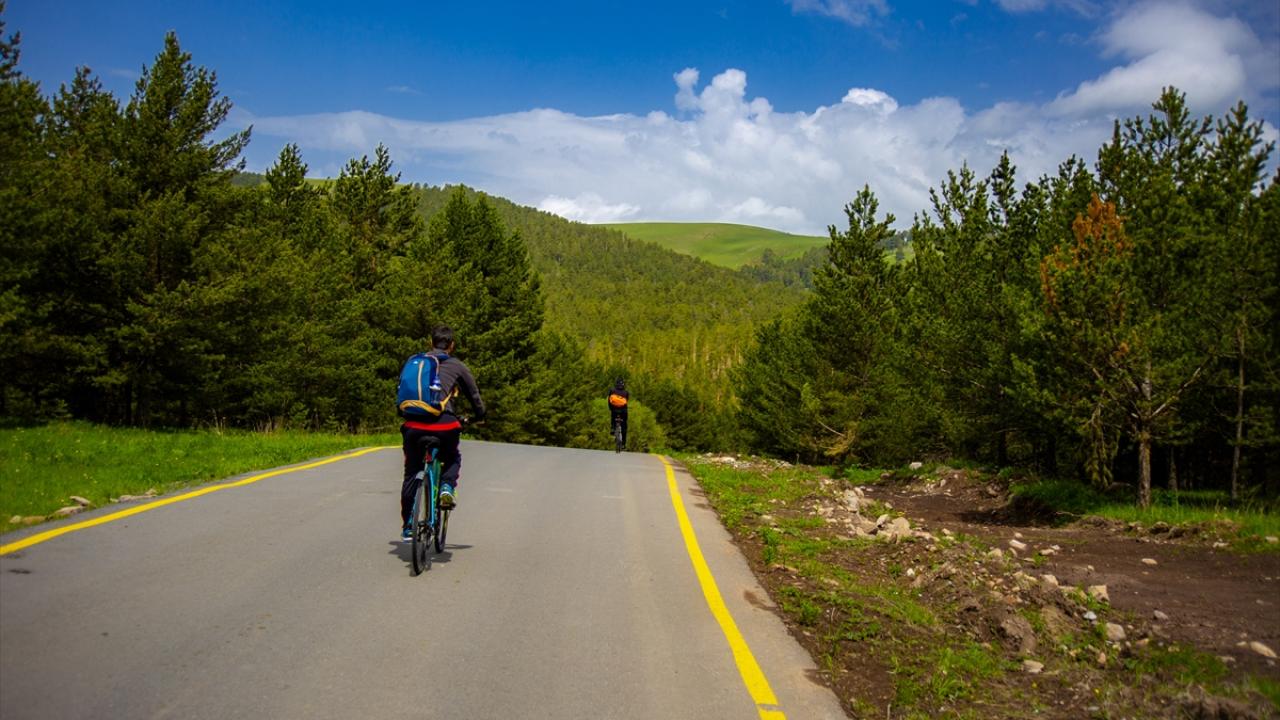 Göle ilçesinin Erzurum sınırındaki yeşil tonla kaplanan bölgede bisikletçiler pedal çevirdi.