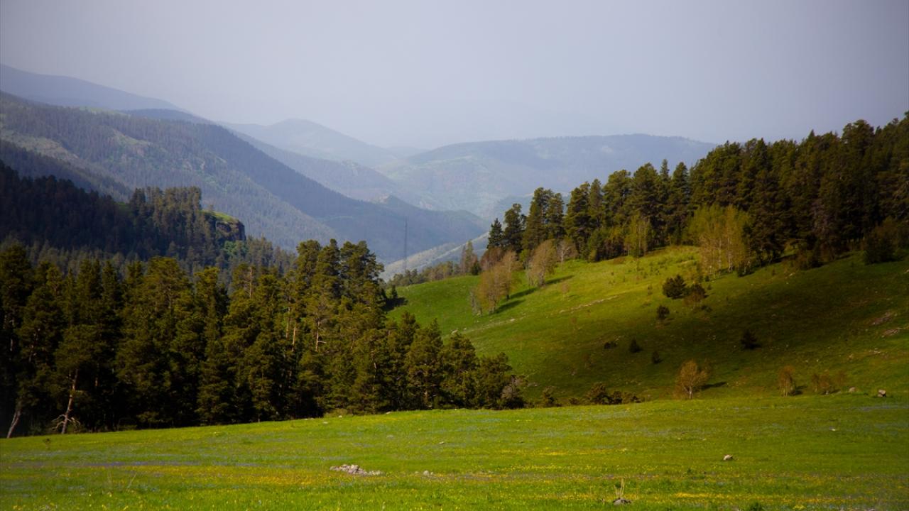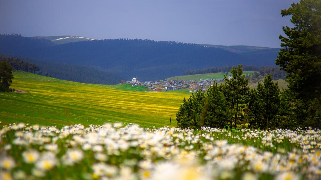 Kış mevsiminin soğuk ve karlı geçtiği Ardahan'ın Göle ilçesinde doğa, ilkbahar mevsiminin ardından renklere büründü.