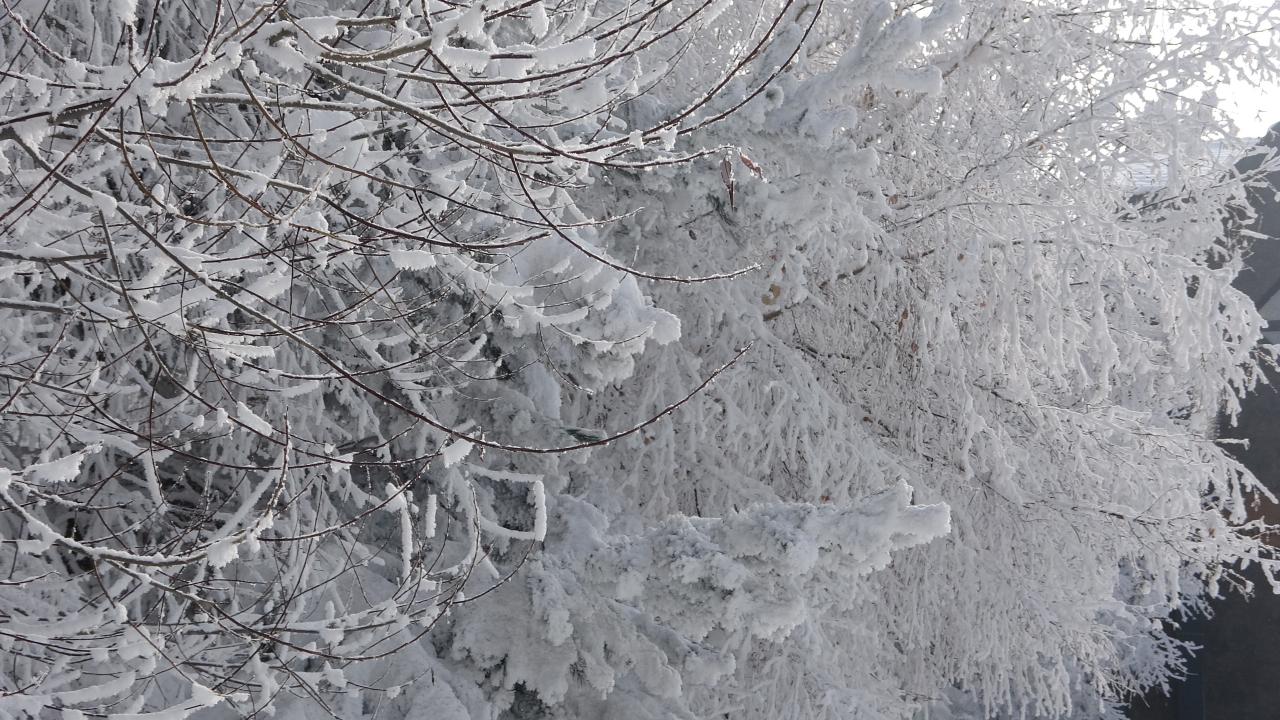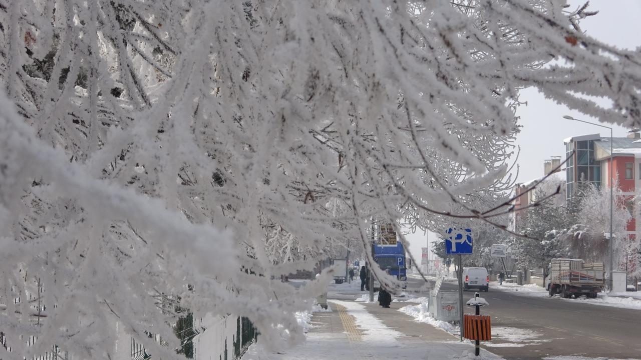 Kırağıyla eşsiz bir görünüme kavuşan ağaç ve bitkiler, kartpostallık görüntüler oluşturdu.