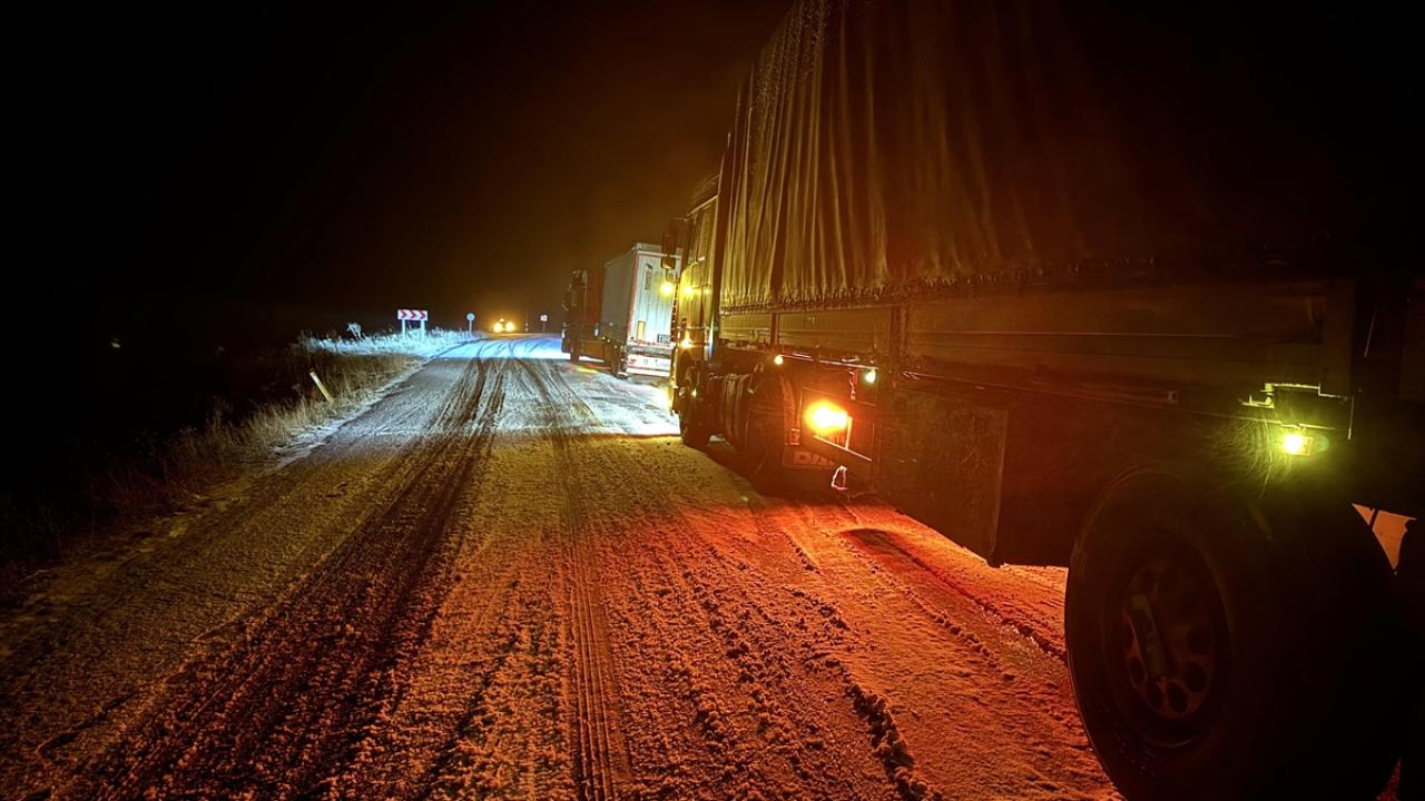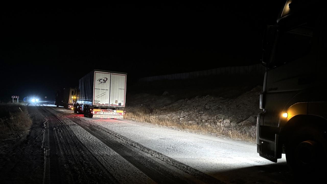 Ardahan-Şavşat kara yolunun Sahara mevkisinde oluşan buzlanma nedeniyle 6 tır, Yaylalar mevkisinde ise 3 araç yolda kaldı.
