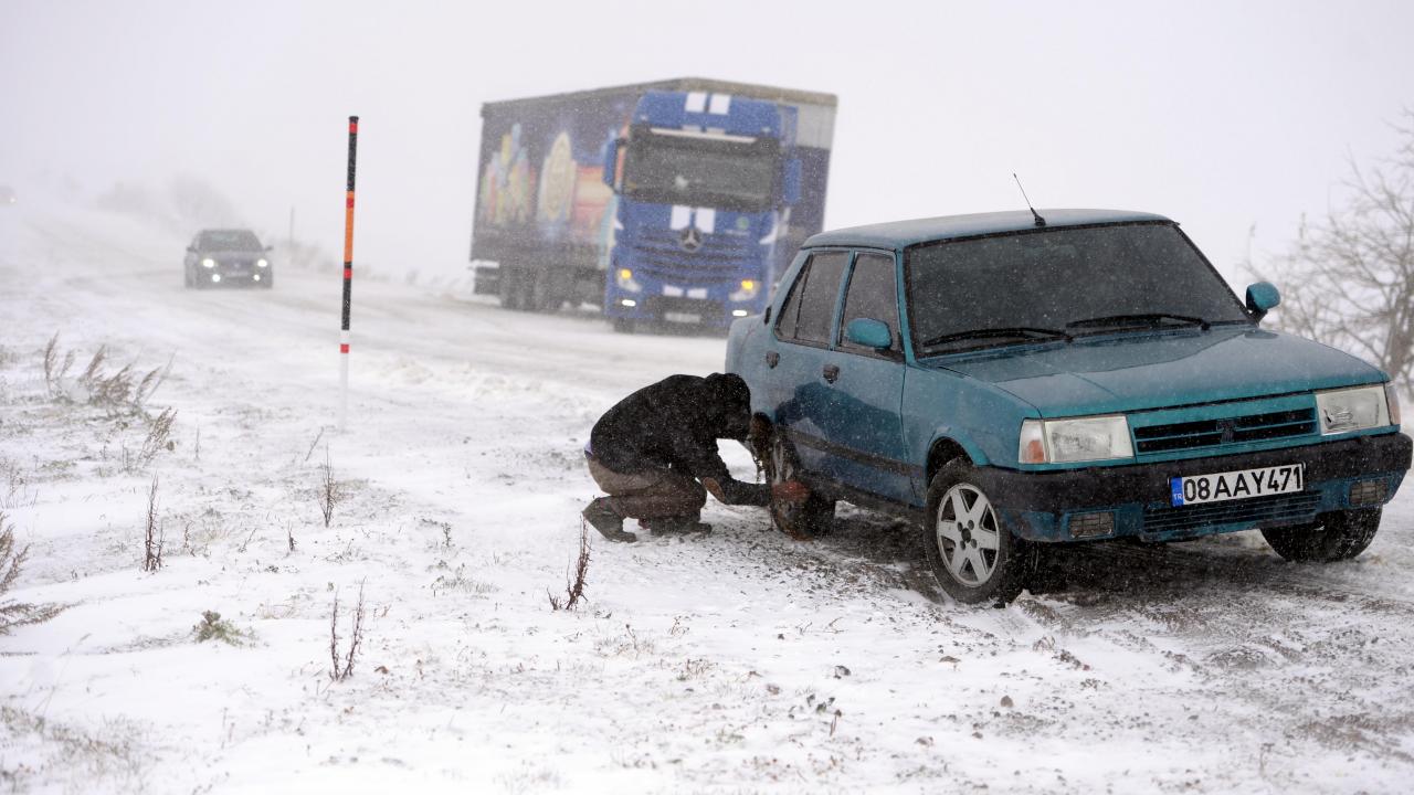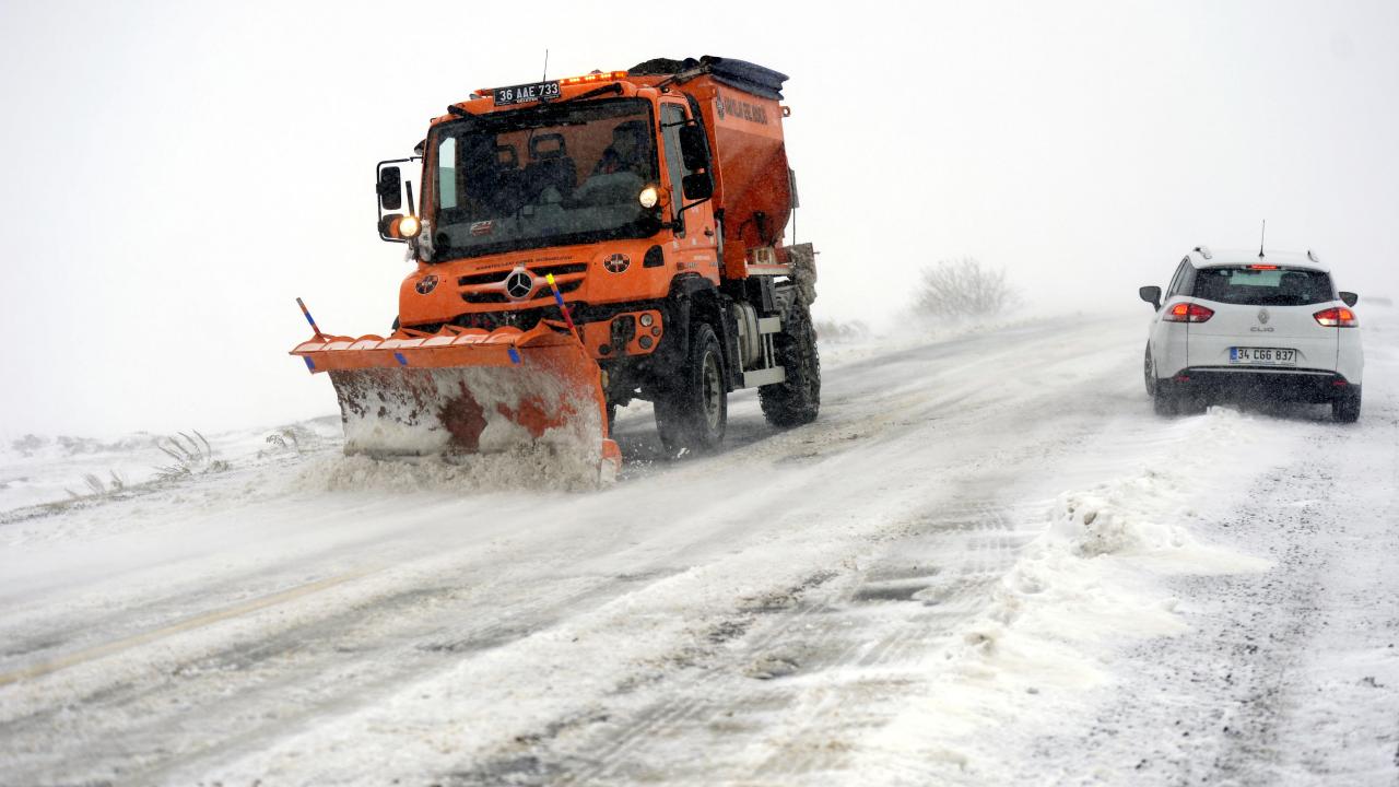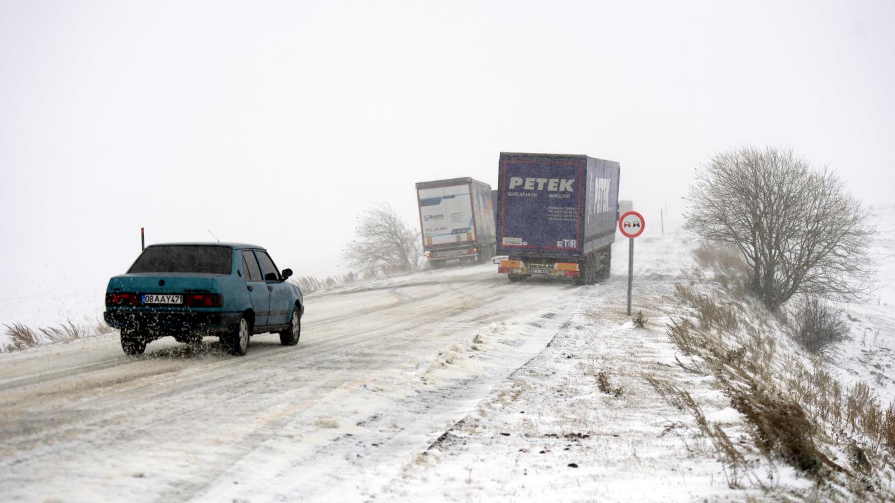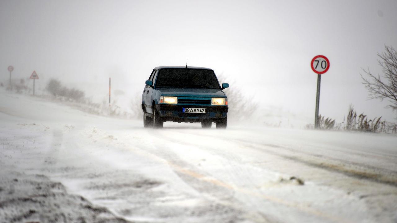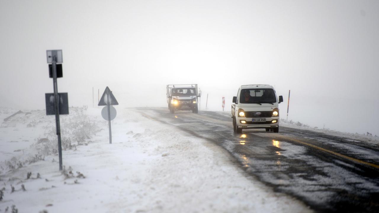 Ardahan'da kar yağışı: Araçlar yolda mahsur kaldı