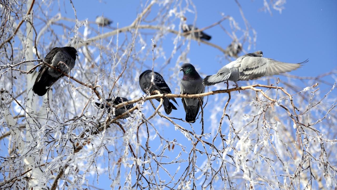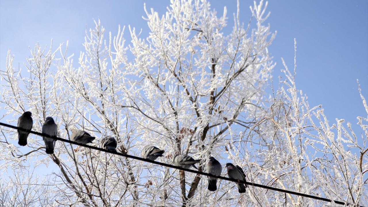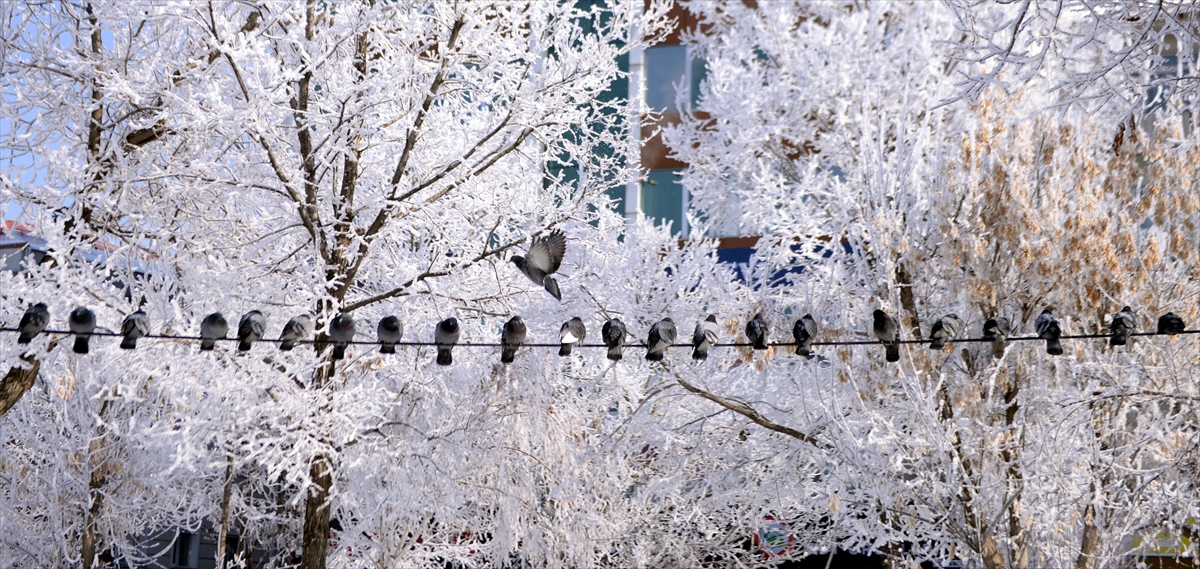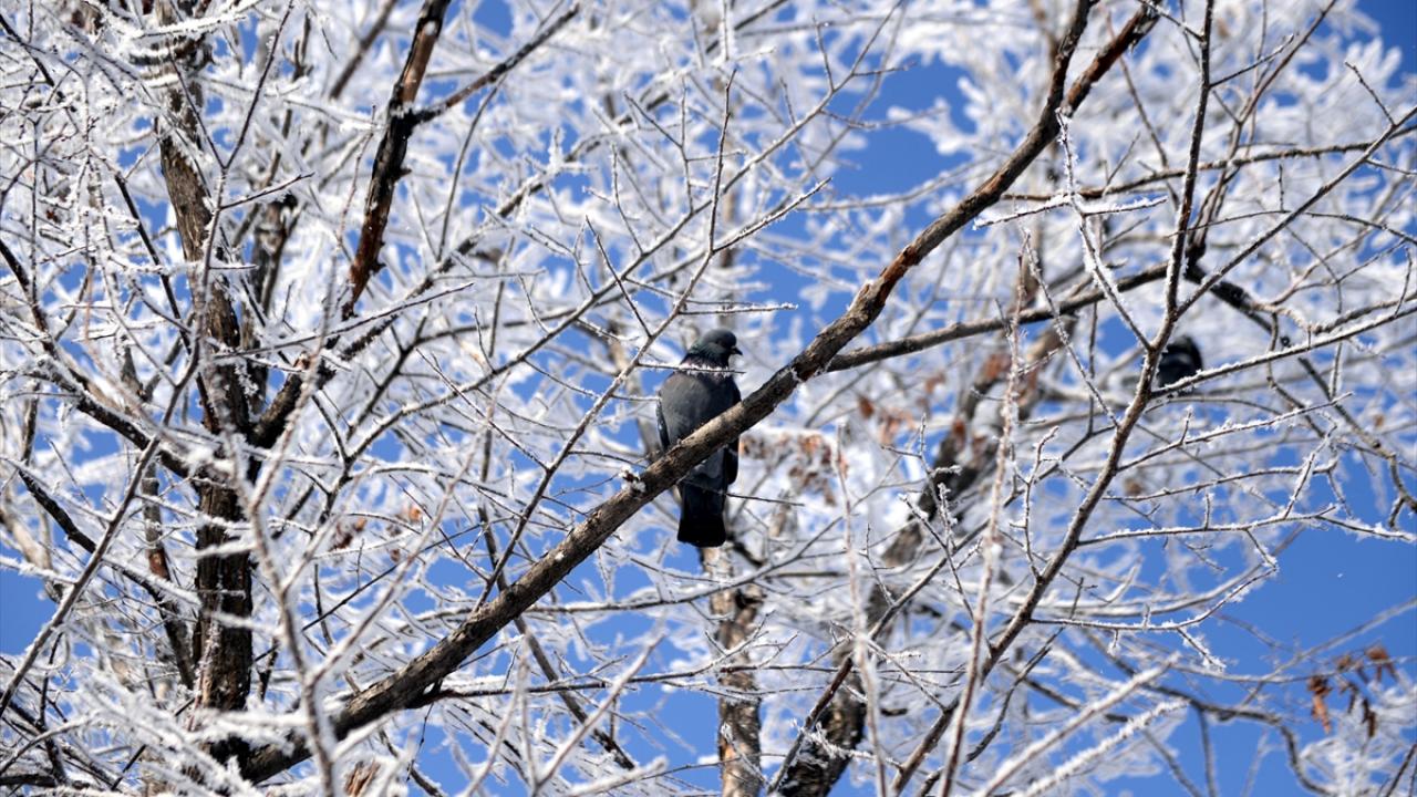 Ardahan'da etkili olan soğuk hava nedeniyle kırağı oluştu.
