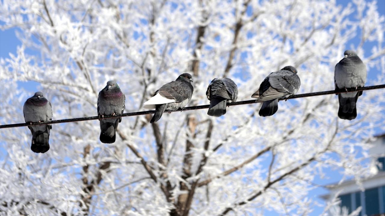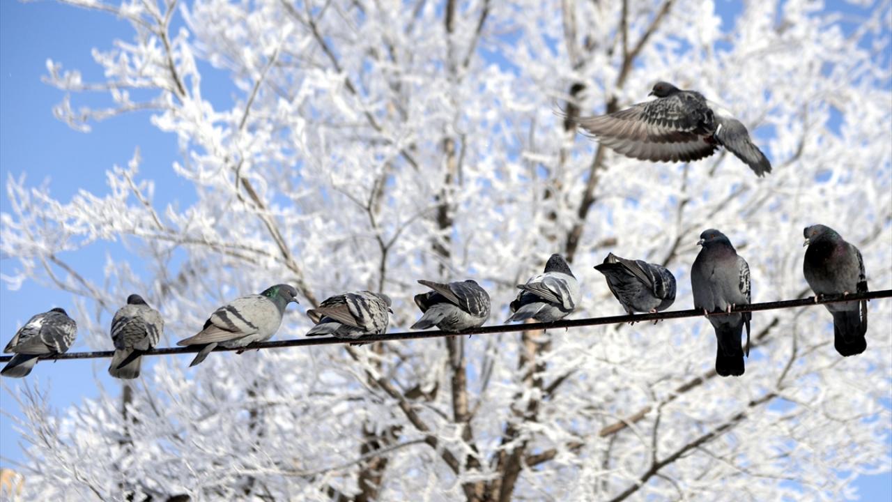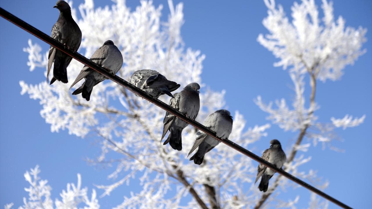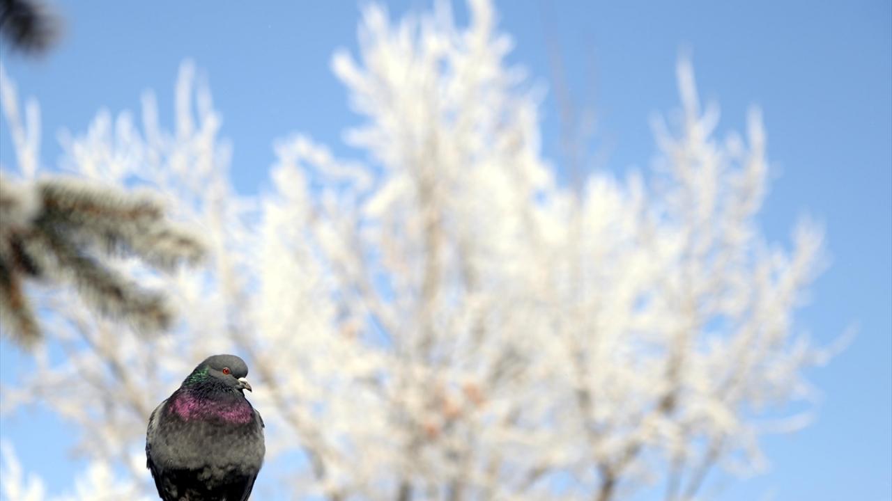 Ardahan'da etkili olan soğuk hava nedeniyle kırağı oluştu.