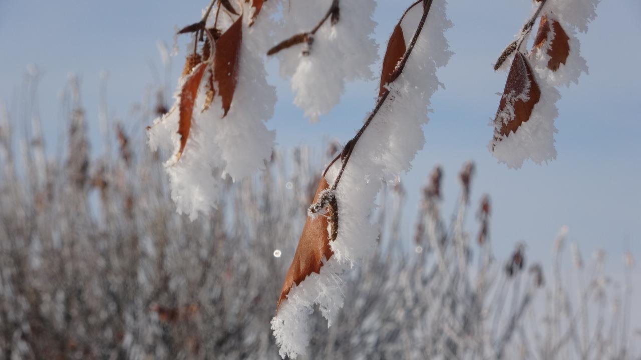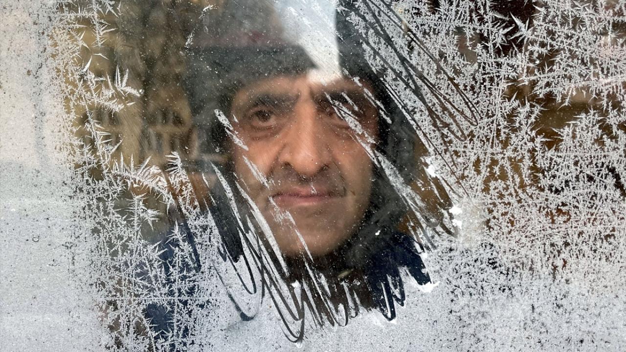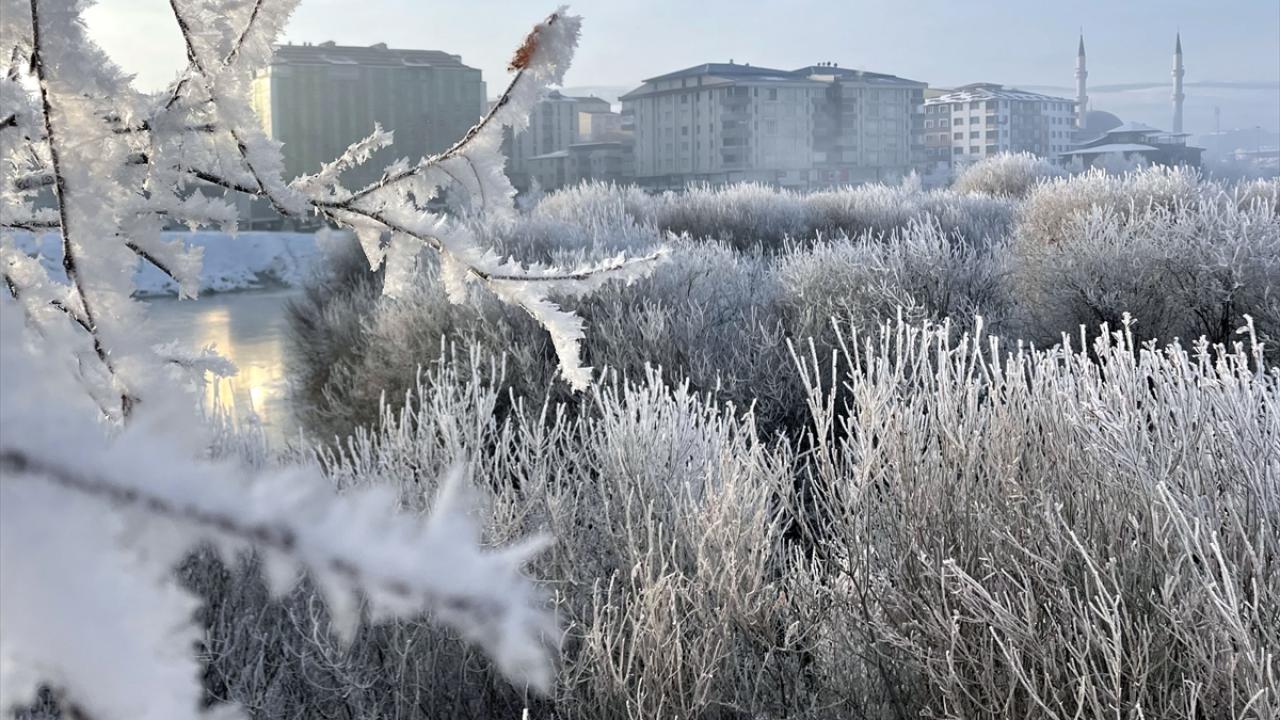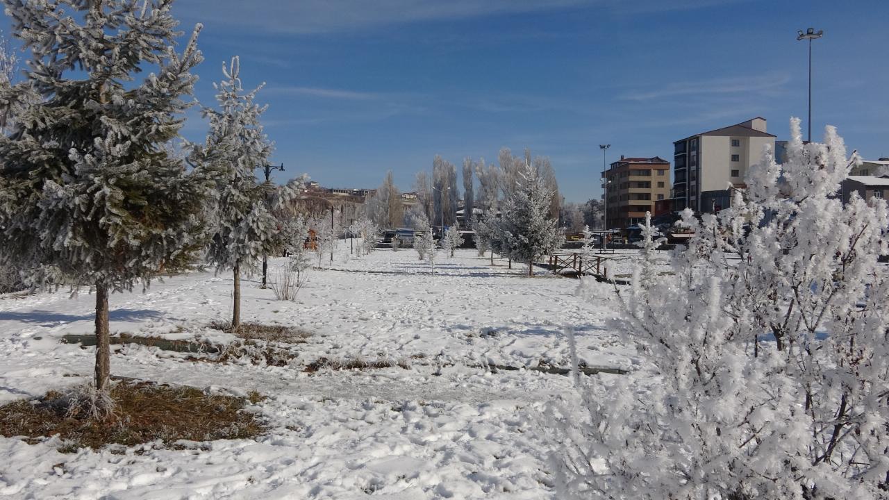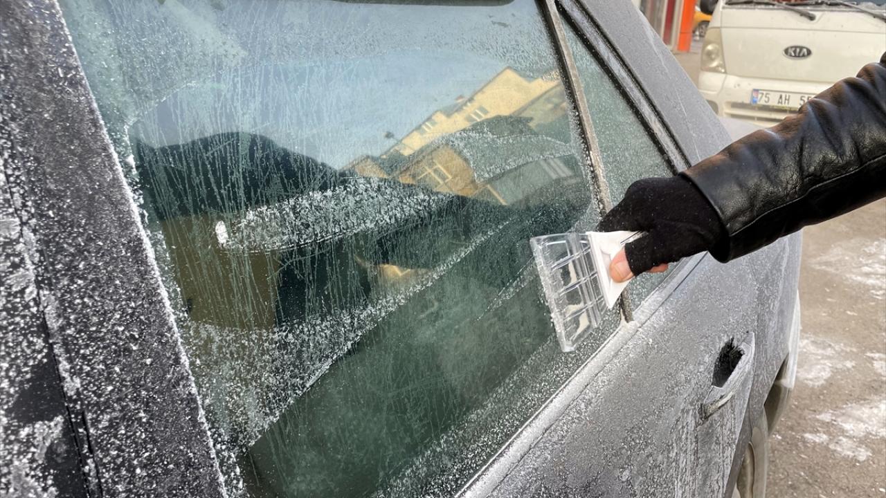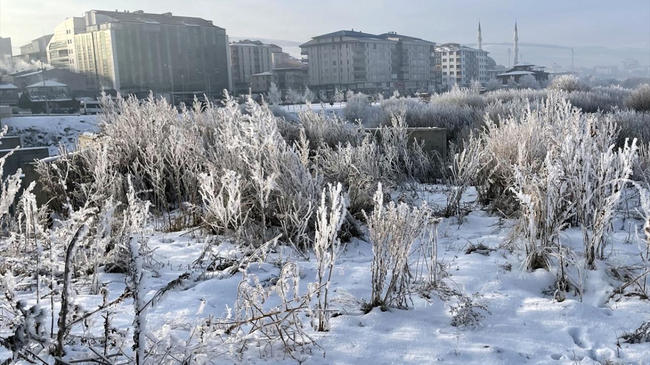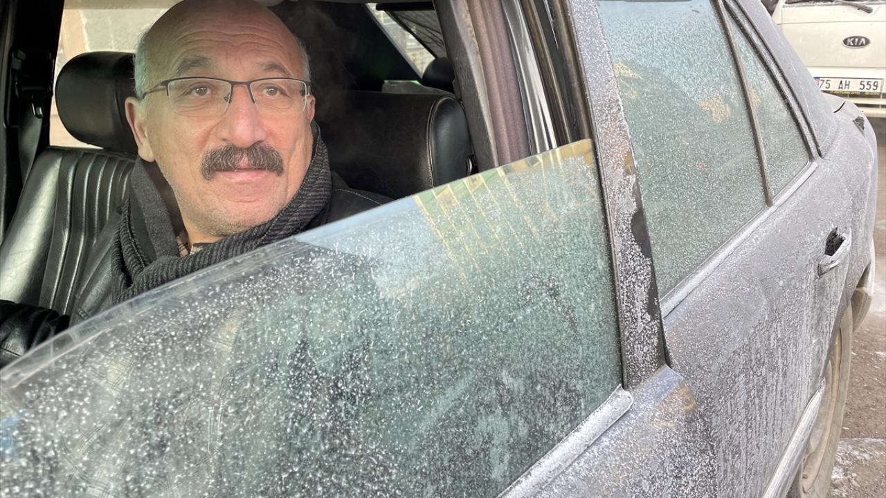 Kentte park halindeki araçların camları buzla kaplandı, bitkiler kırağı tuttu.