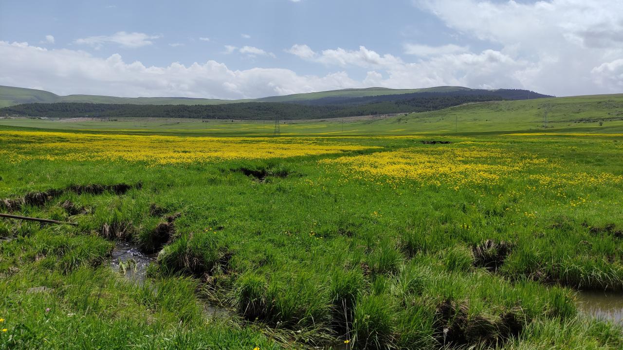 Ardahan ovasının etrafını çevreleyen dağların yüksek kesimlerindeki karlar ova tabanındaki sarıçiçekler ve değişik türdeki çiçeklerle birleşince kartpostallık görüntüler ortaya çıktı.