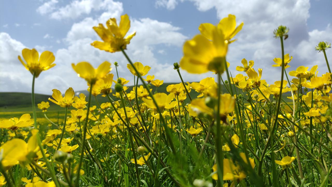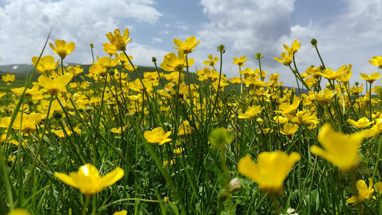 Ardahan`da, yazın gelmesine rağmen etkili olan sağanak yağışların ardından açan çiçeklerle beraber ovalar eşsiz güzelliğe büründü.