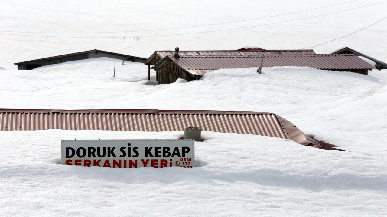 Kar yağışı nedeniyle vatandaşların yazın kullandığı yaylalar, beyaza büründü. Kar, yayla evlerinin çatısına kadar yükseldi.