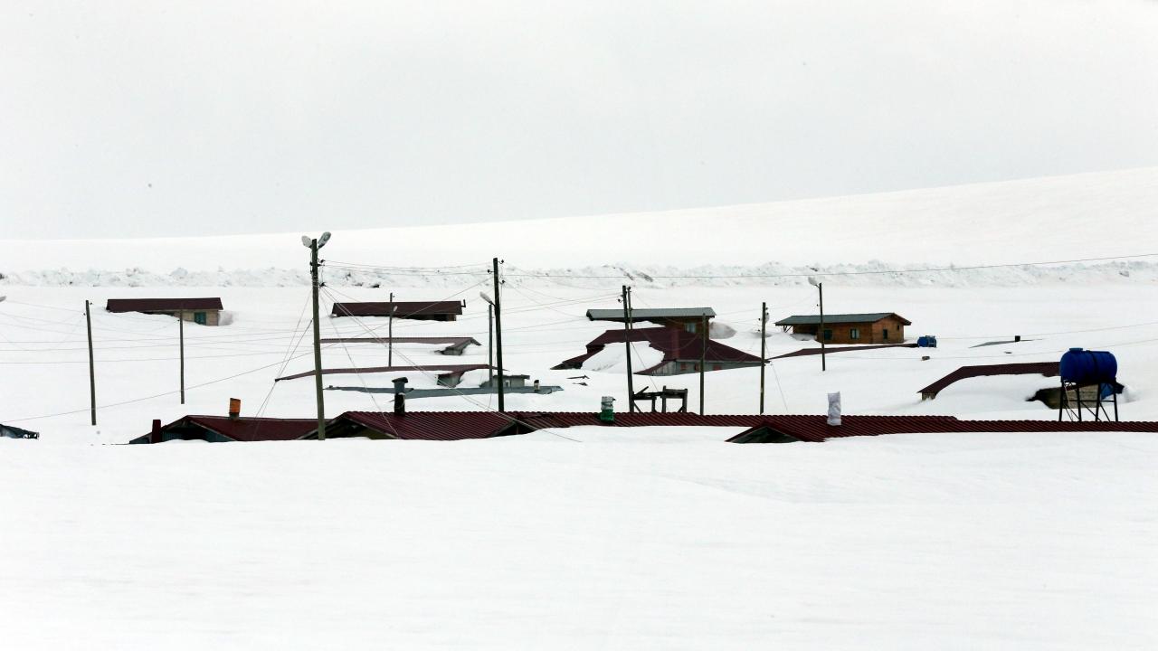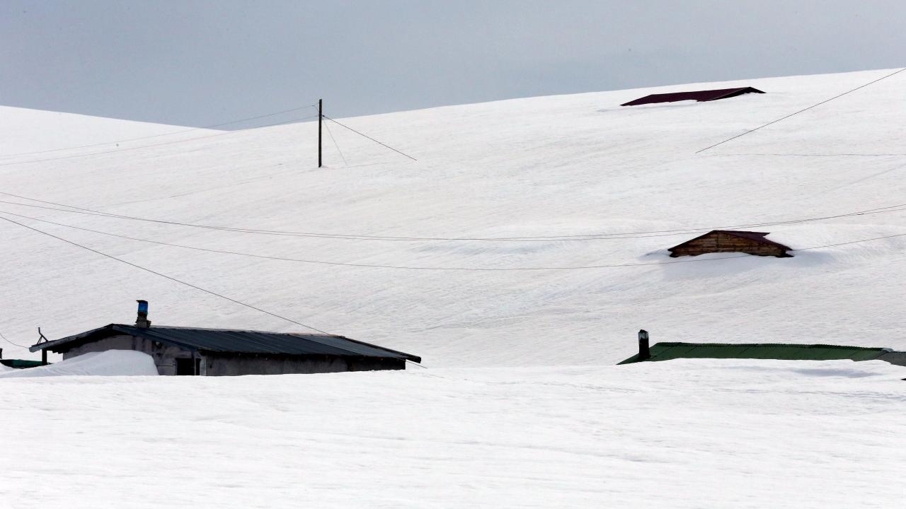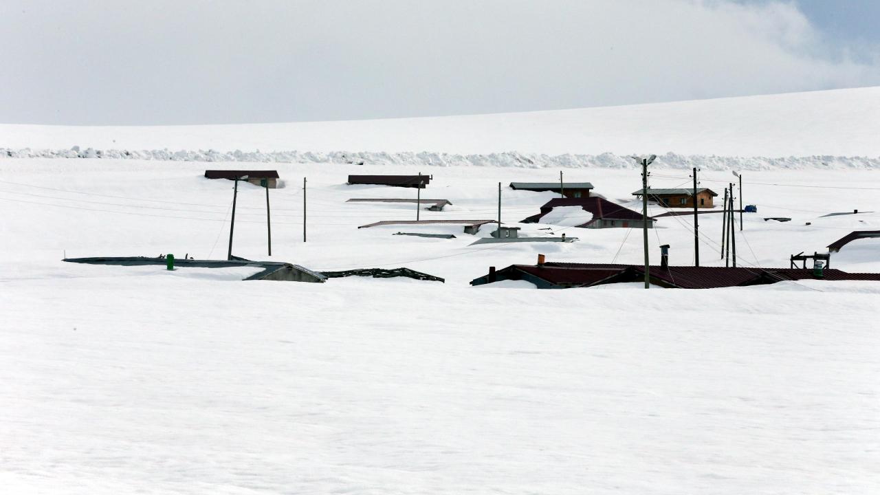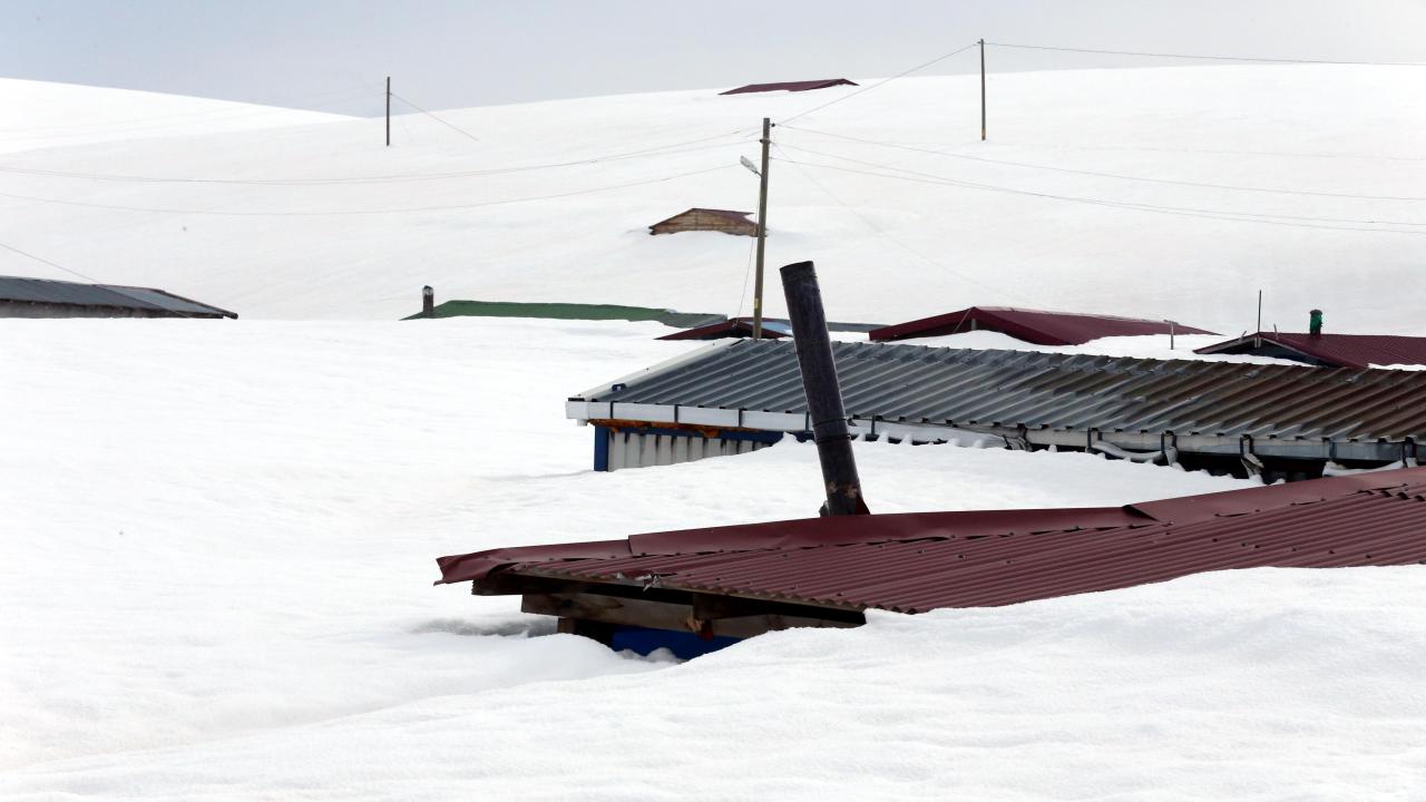 Ardahan'da yayla evleri ilkbaharda kara gömüldü