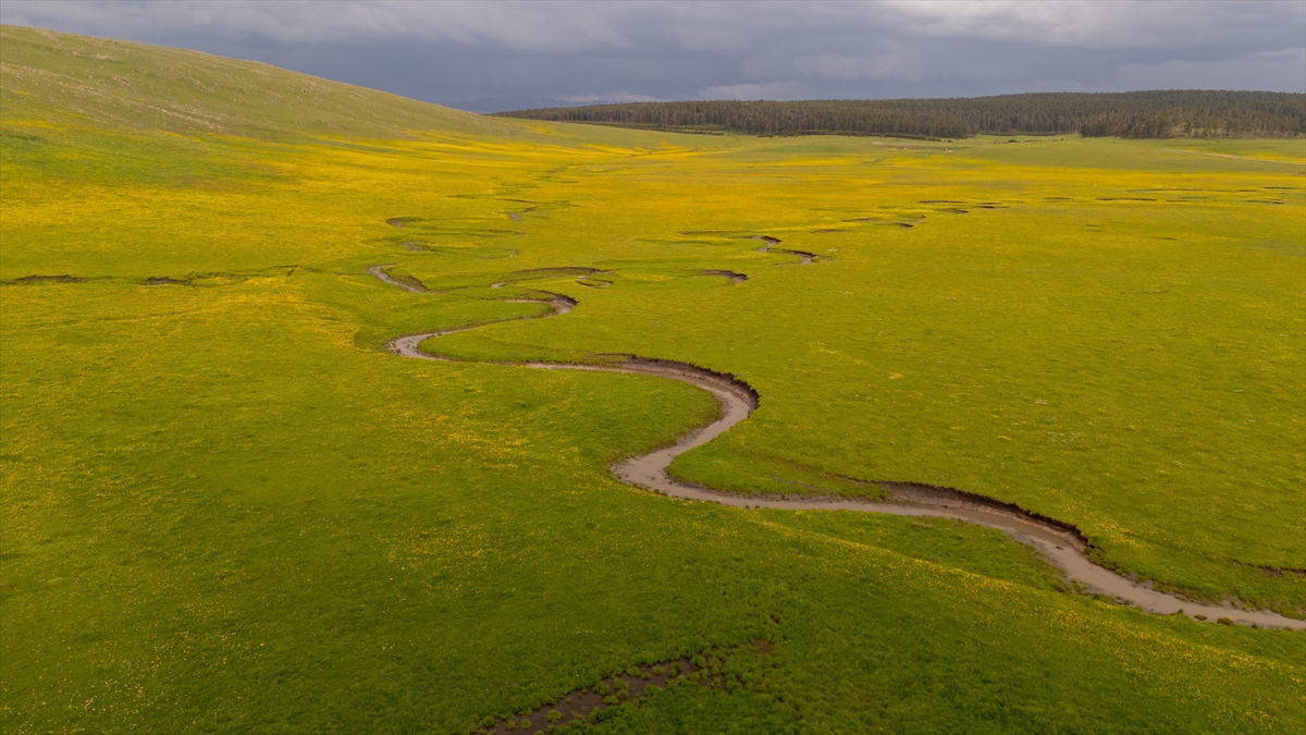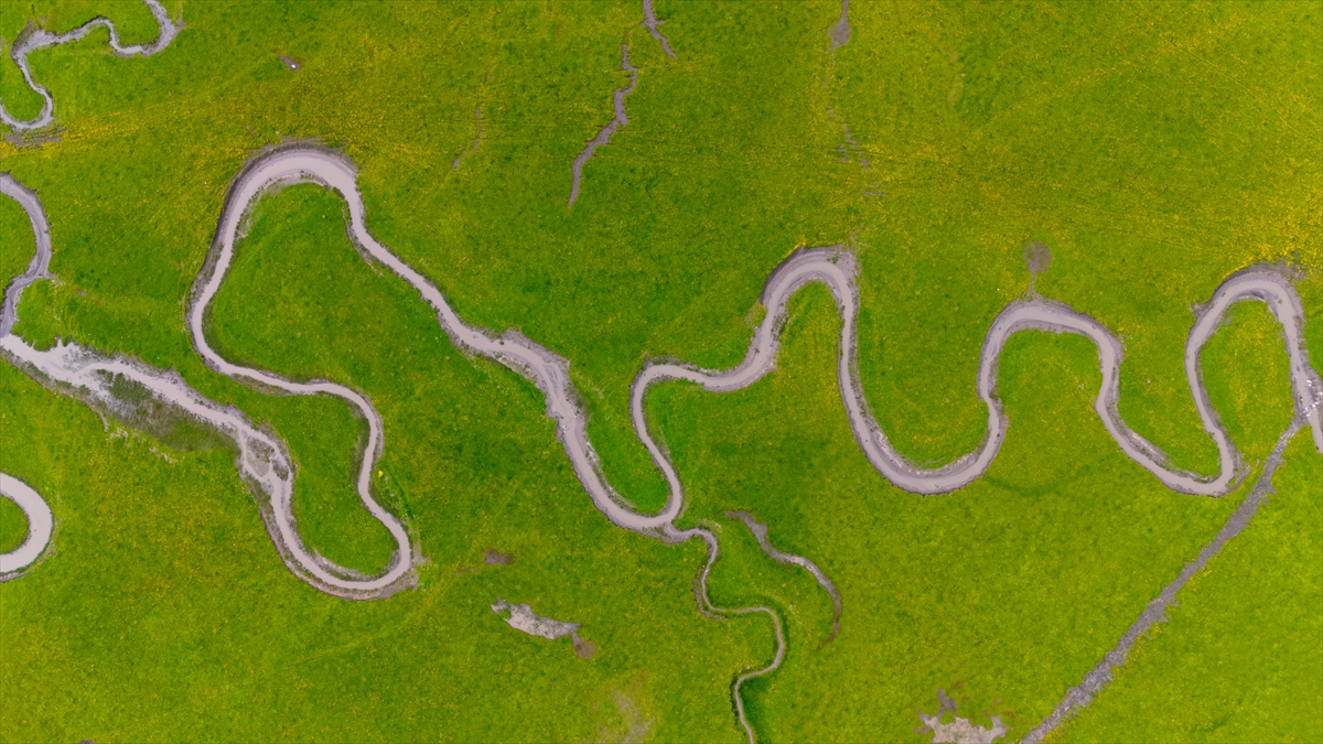 Bölgedeki ovalardan geçen menderesler, çevresini saran ilkbahar renkleriyle görsel bir şölen sundu.