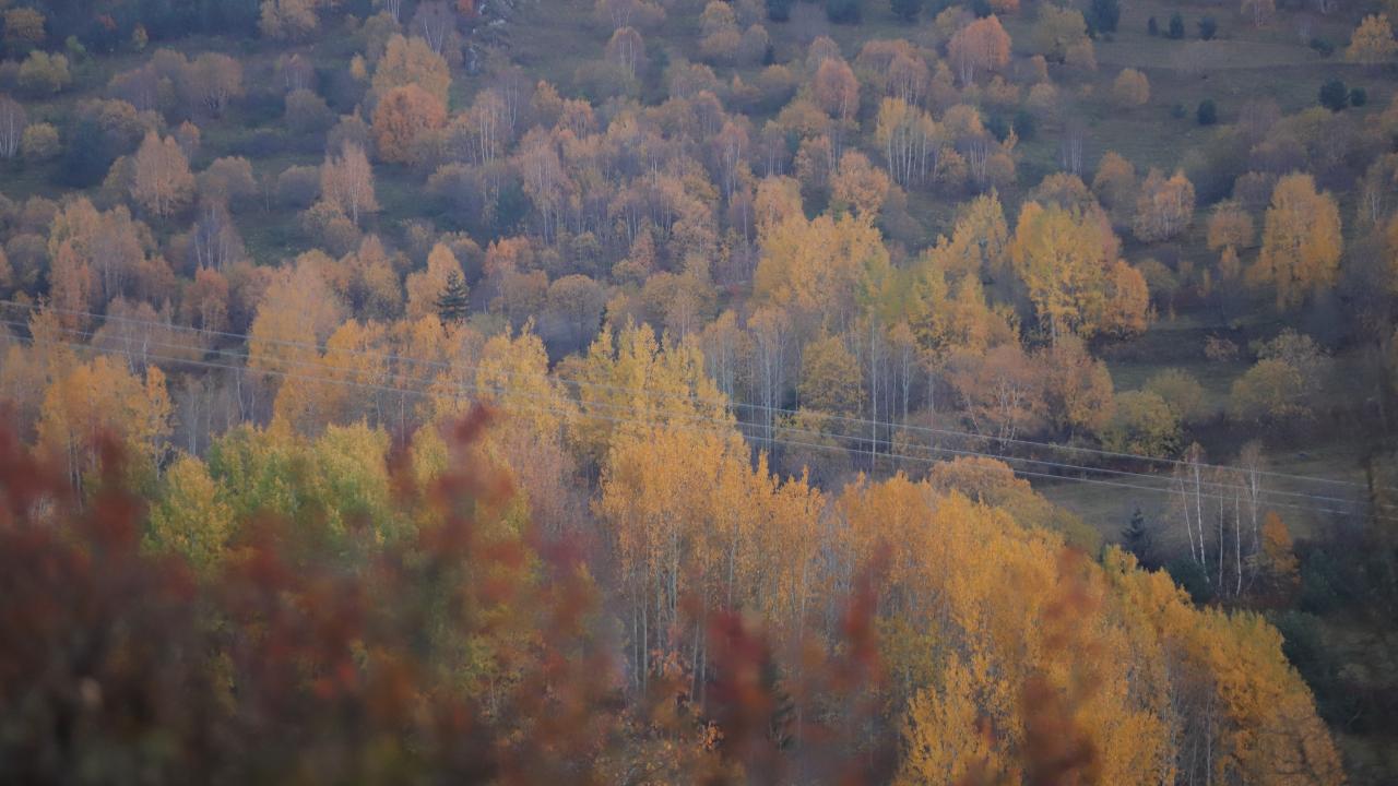 Bir bölümü sararırken bir bölümü hala yeşilliğini koruyan ağaçlar, yöreye ayrı bir renk katıyor.