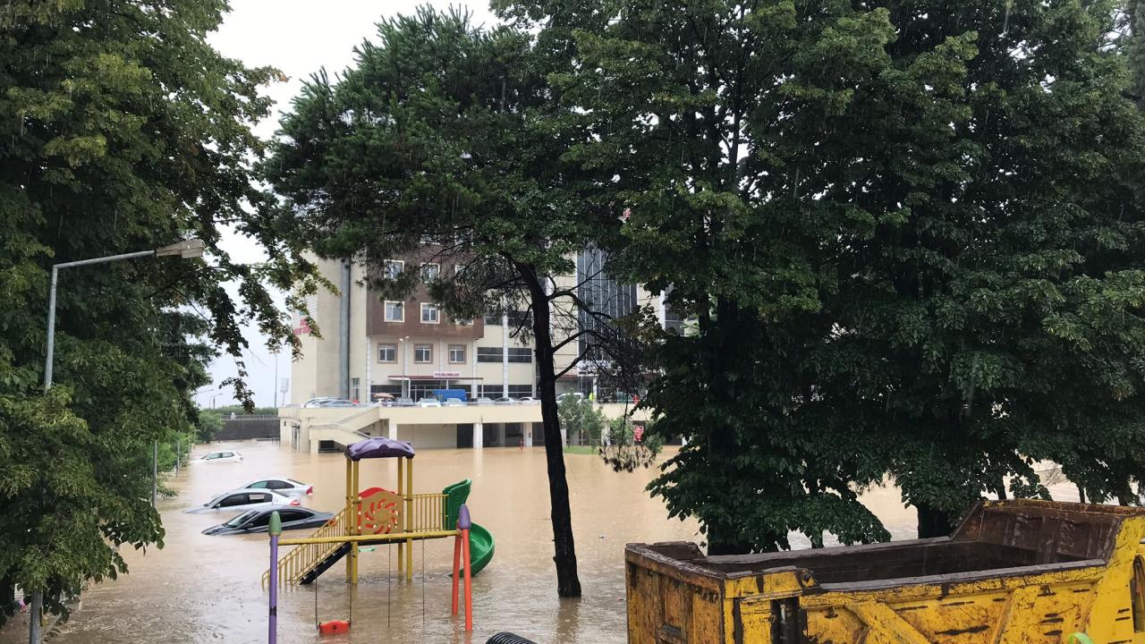 İlçe merkezinde yer yer 2 metreye ulaşan su birikintisi dolayısıyla ulaşım sağlanamıyor.