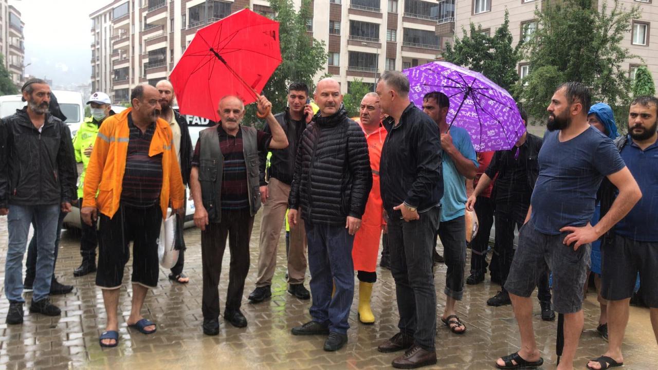 İlçeye gelen İçişleri Bakanı Süleyman Soylu bölgede incelemelerde bulundu.