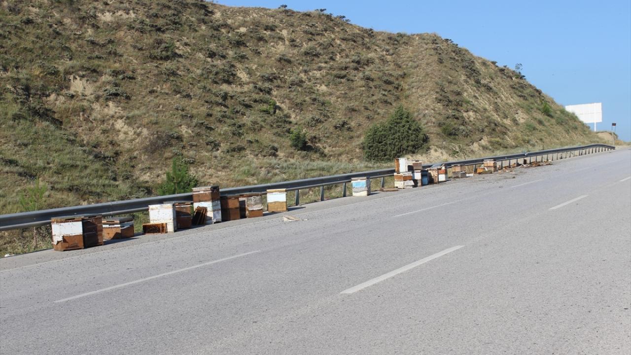 Etrafa dağılan kovanlar, diğer arıcılar tarafından toplanarak yol kenarına taşındı.