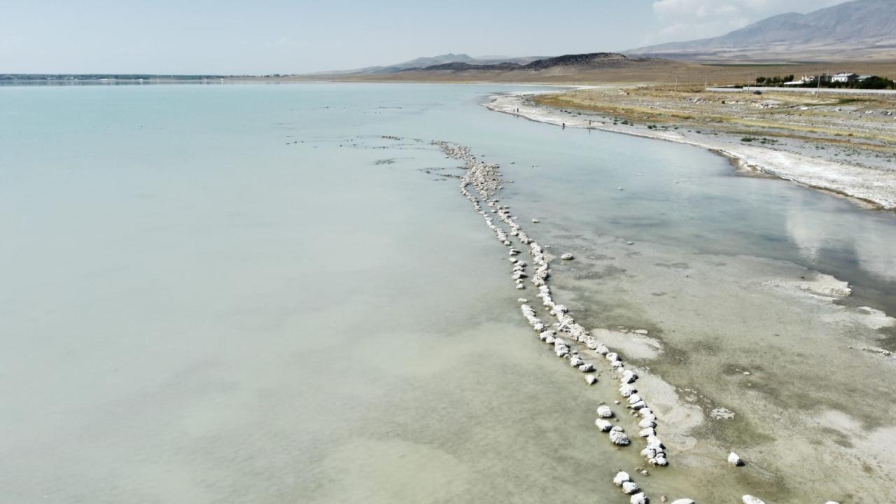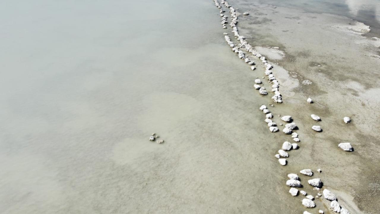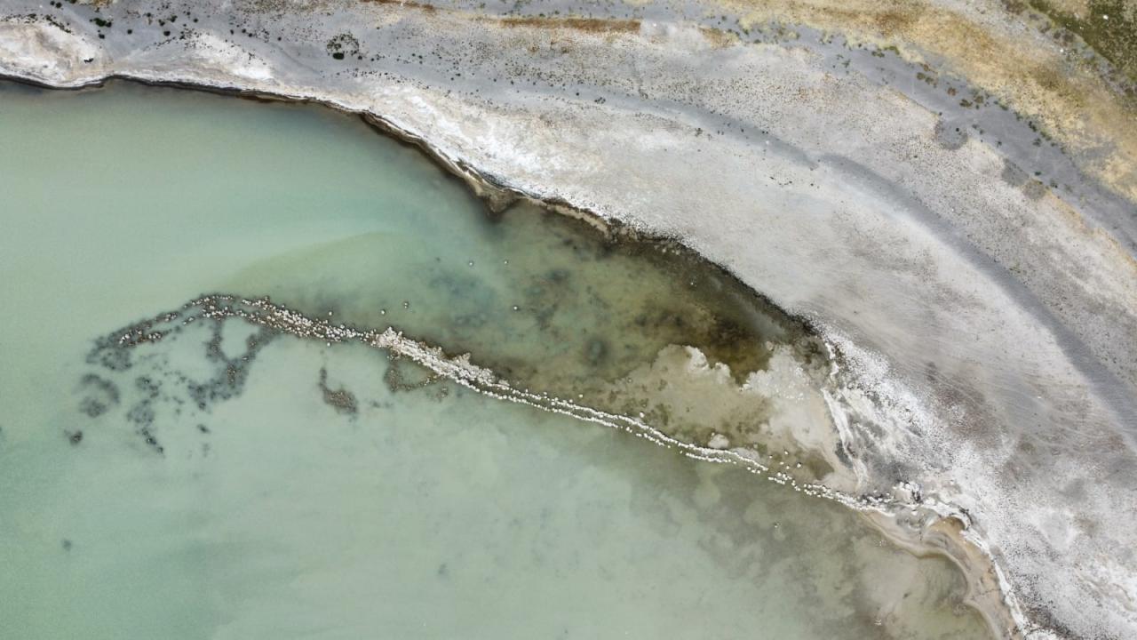 Arin Gölü'ndeki çekilmeyle mikrobiyalitler gün yüzüne çıktı