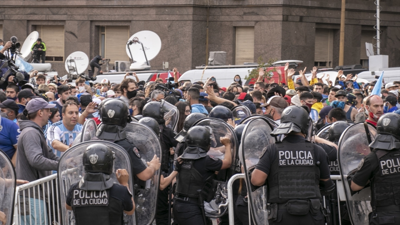 Maradona`nın ölümünün ardından dün binlerce kişi sokağa dökülmüş ve gece boyunca futbolcuyu anmak için sloganlar atmıştı.
